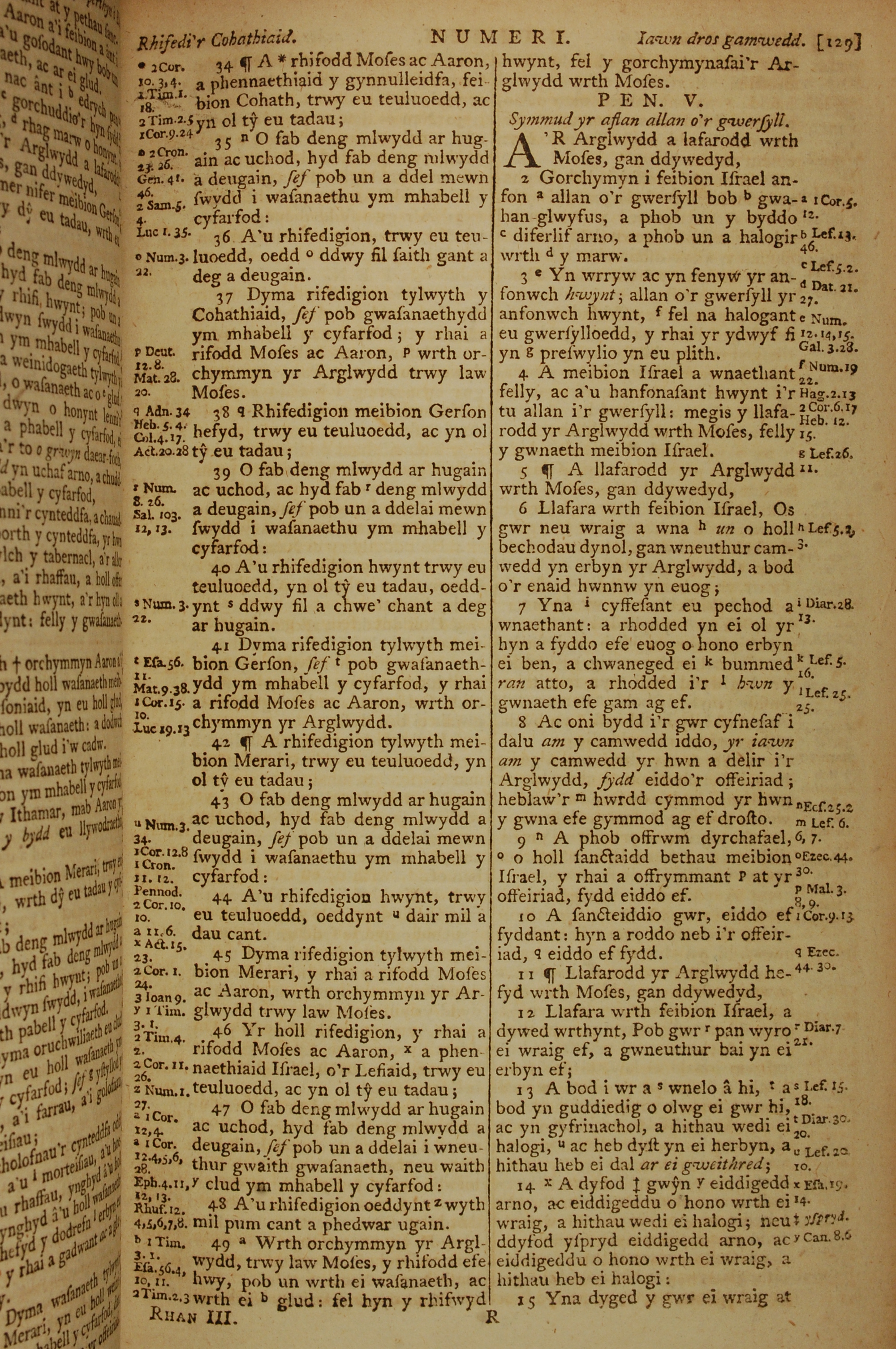 1796年威尔斯文新旧约全书 民数记 4 章 34 节到 5 章 15 节