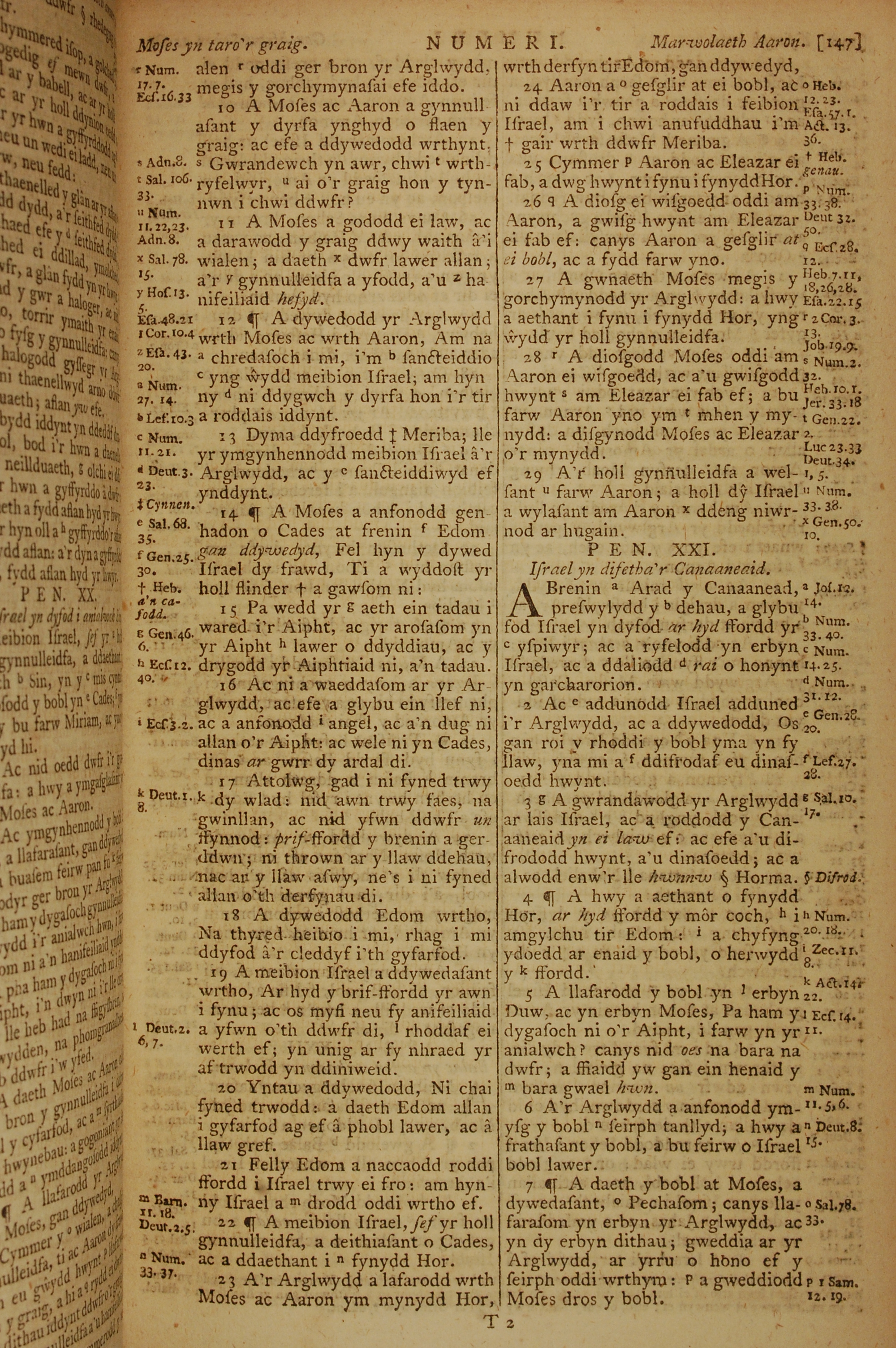 1796年威尔斯文新旧约全书 民数记 20 章 10 节到 21 章 7 节