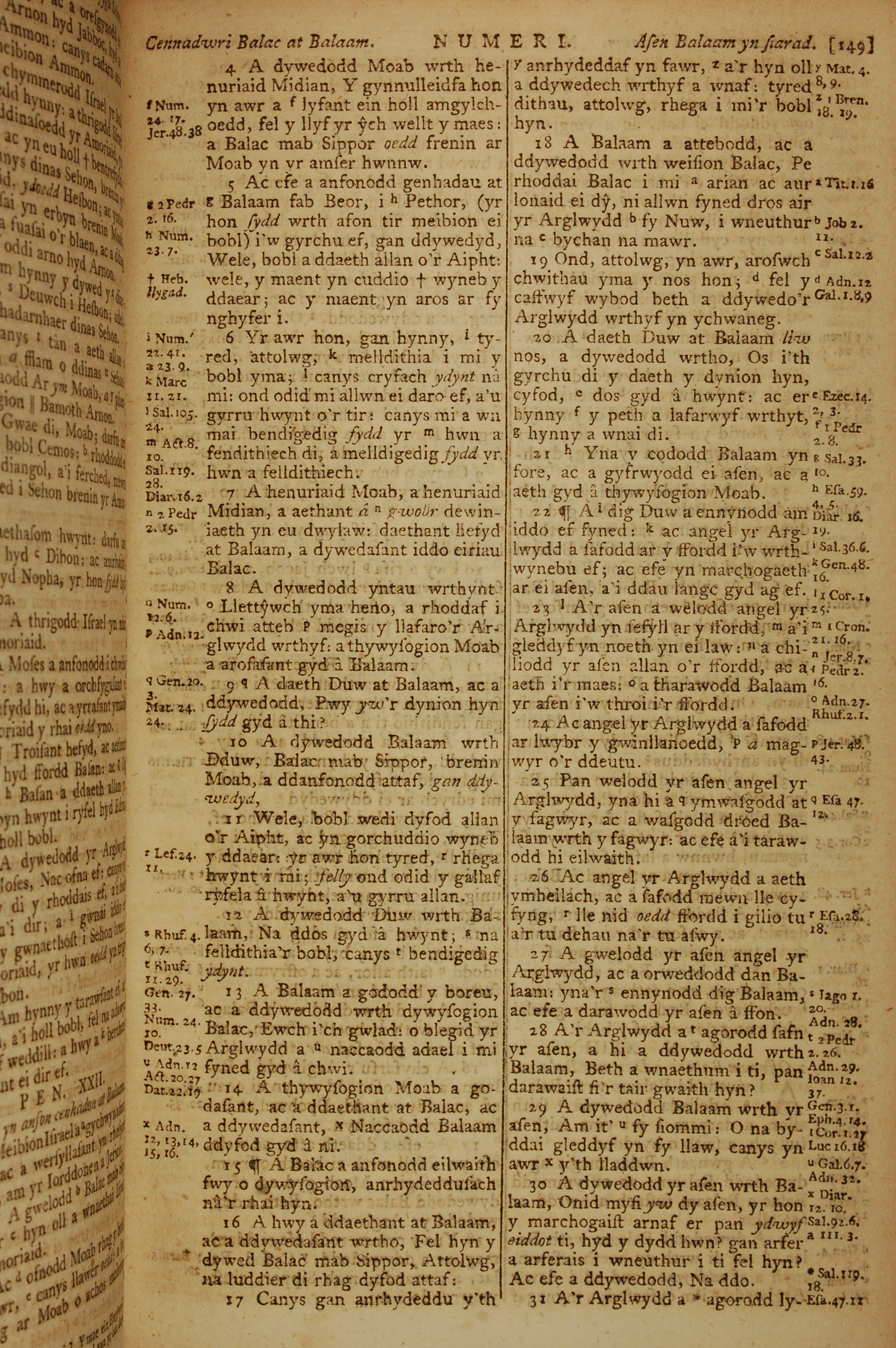 1796年威尔斯文新旧约全书 民数记 22 章 4 节到 22 章 31 节
