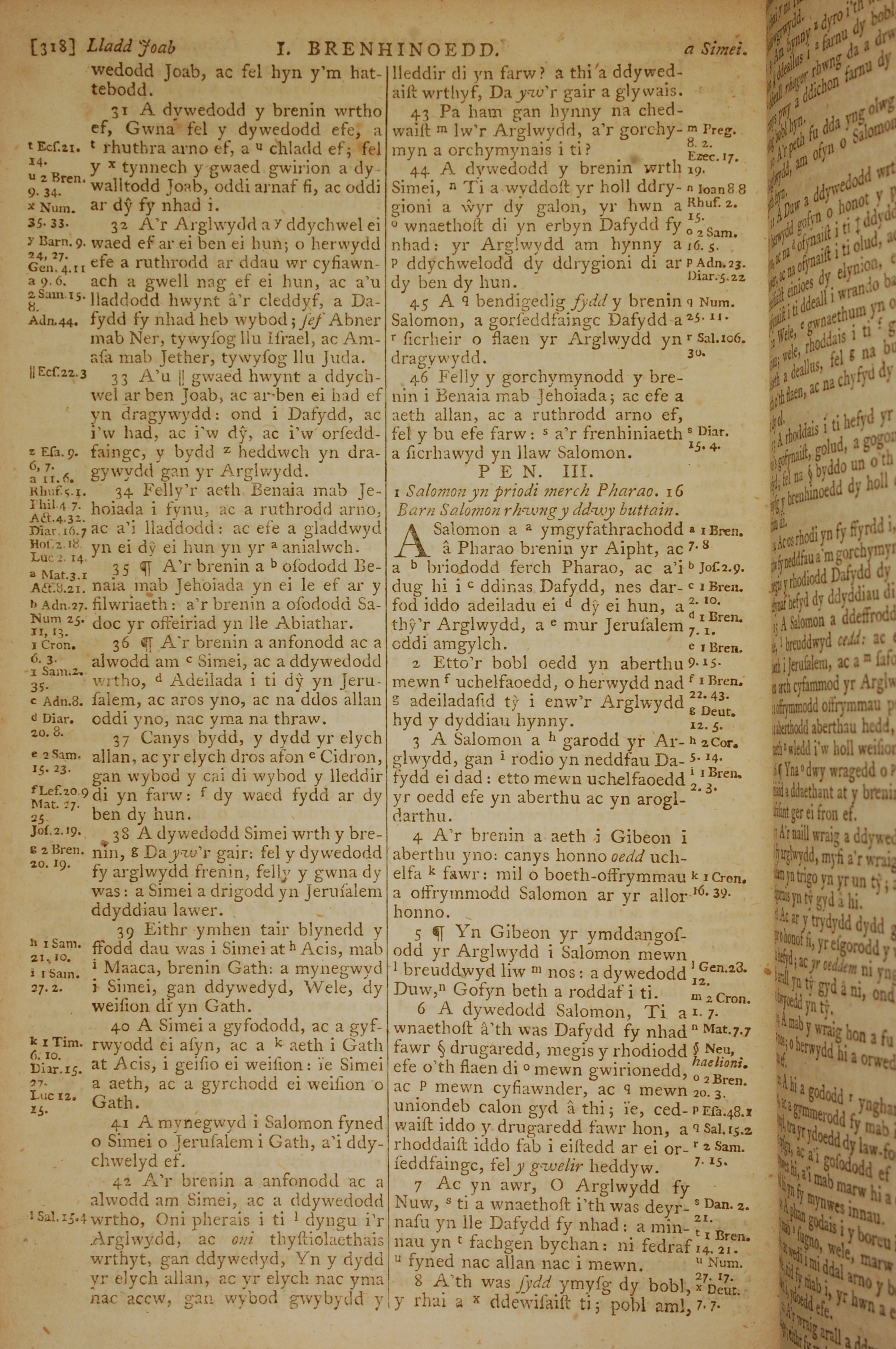 1796年威尔斯文新旧约全书 列王纪上 2 章 31 节到 3 章 8 节