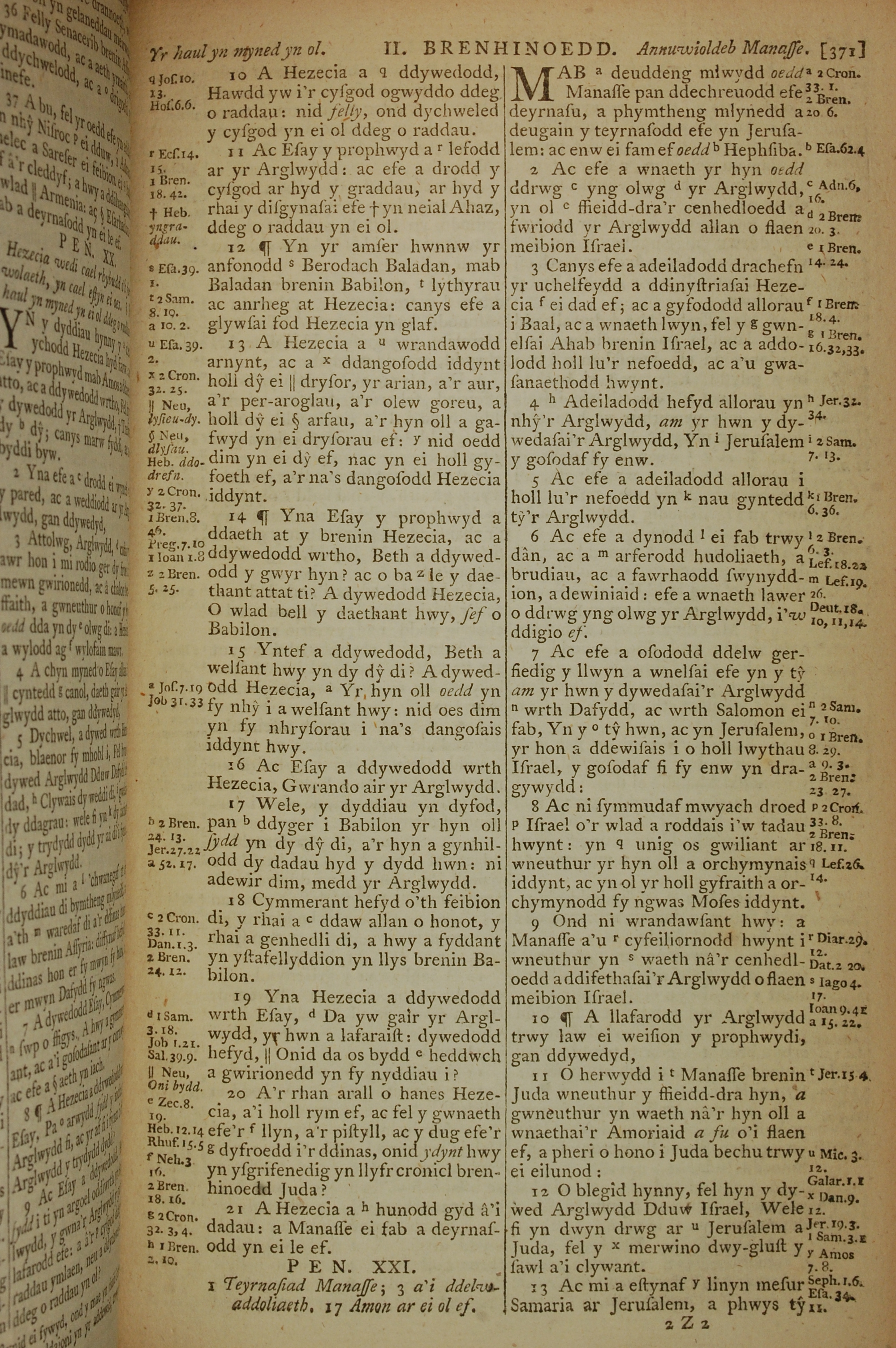 1796年威尔斯文新旧约全书 列王纪下 20 章 10 节到 21 章 13 节