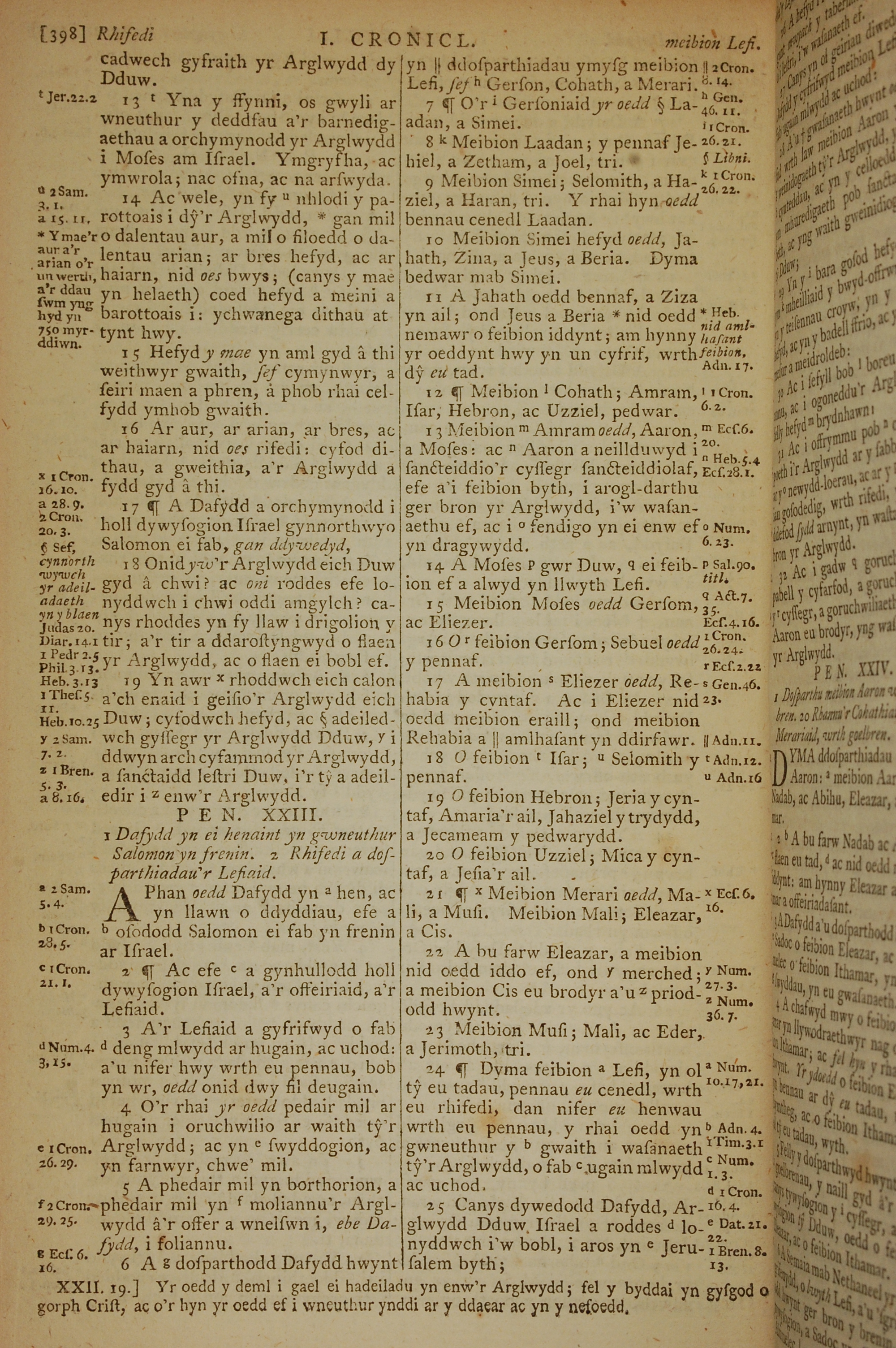 1796年威尔斯文新旧约全书 历代志上 22 章 13 节到 23 章 25 节