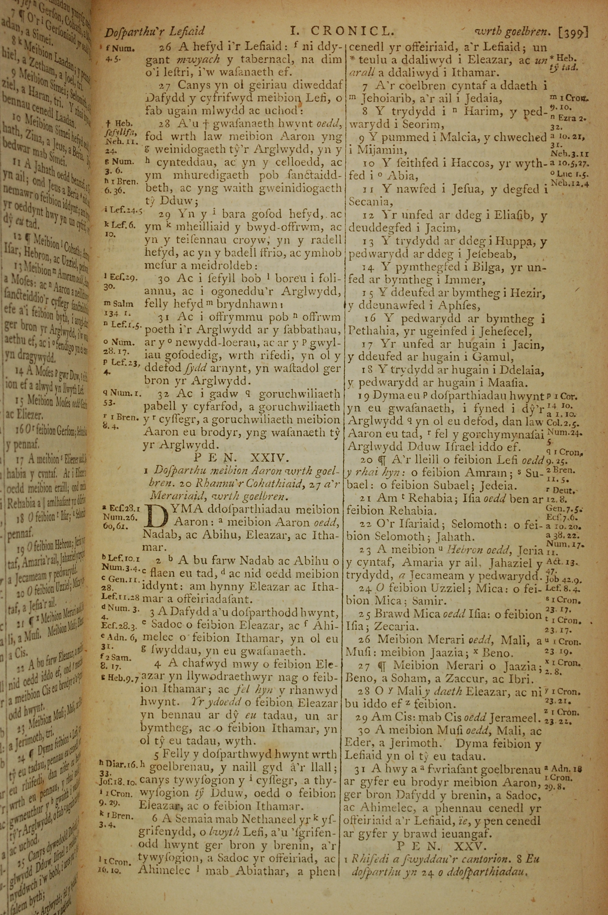 1796年威尔斯文新旧约全书 历代志上 23 章 26 节到 24 章 31 节