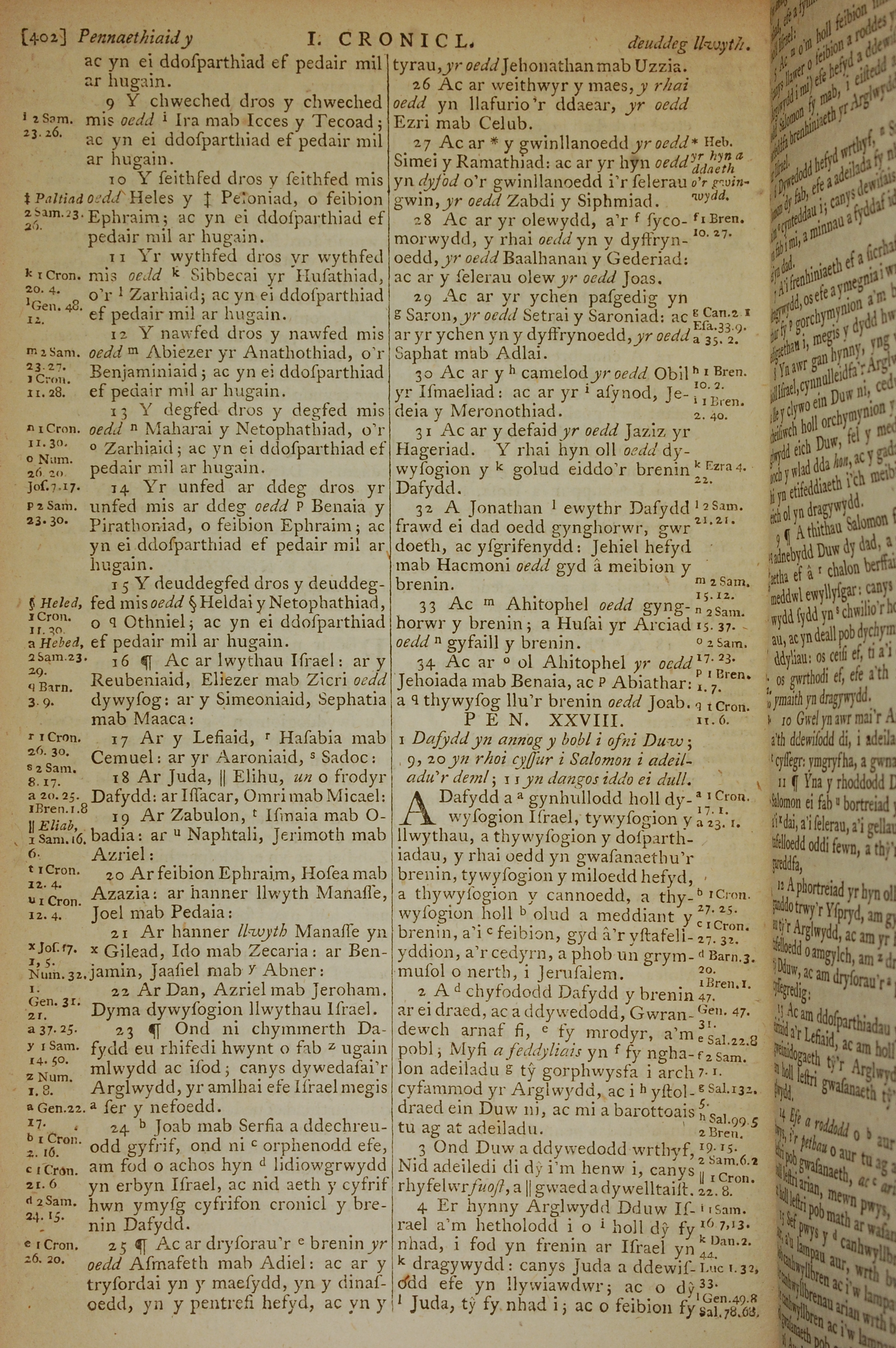 1796年威尔斯文新旧约全书 历代志上 27 章 9 节到 28 章 4 节