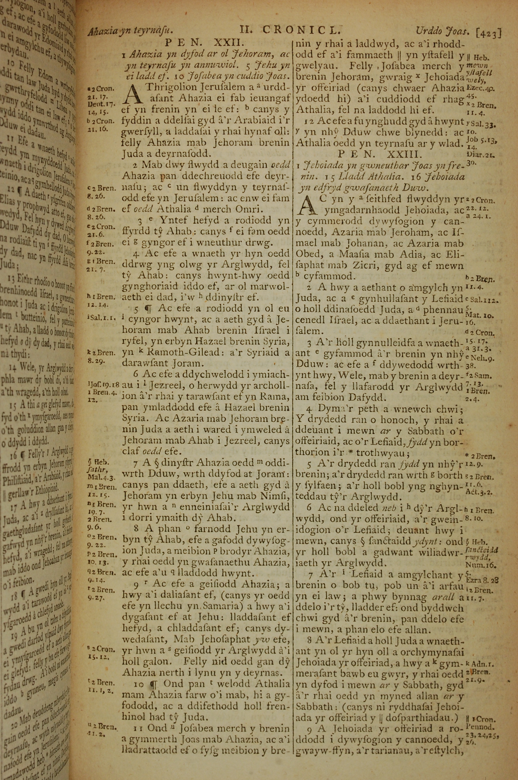 1796年威尔斯文新旧约全书 历代志下 22 章 1 节到 23 章 9 节