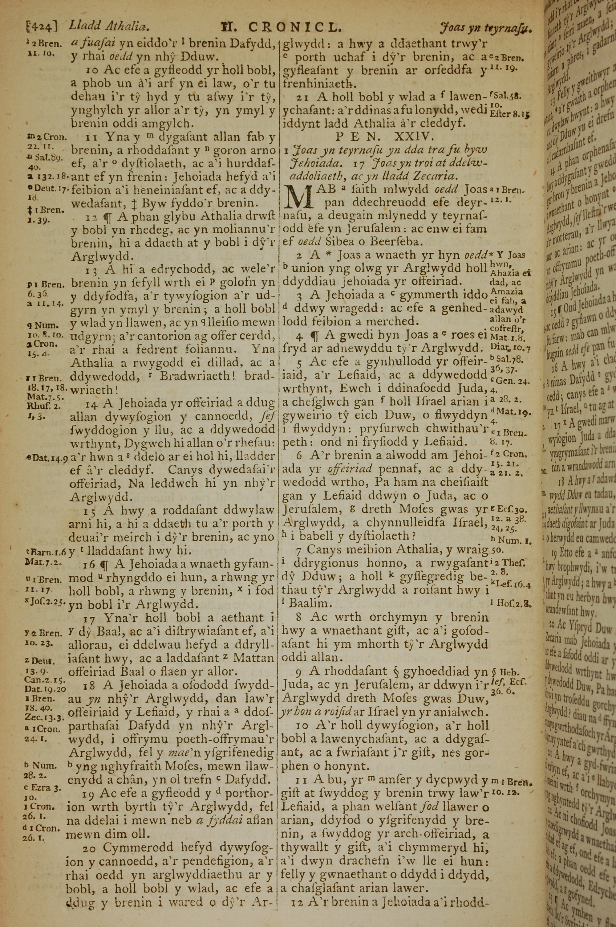 1796年威尔斯文新旧约全书 历代志下 23 章 10 节到 24 章 12 节