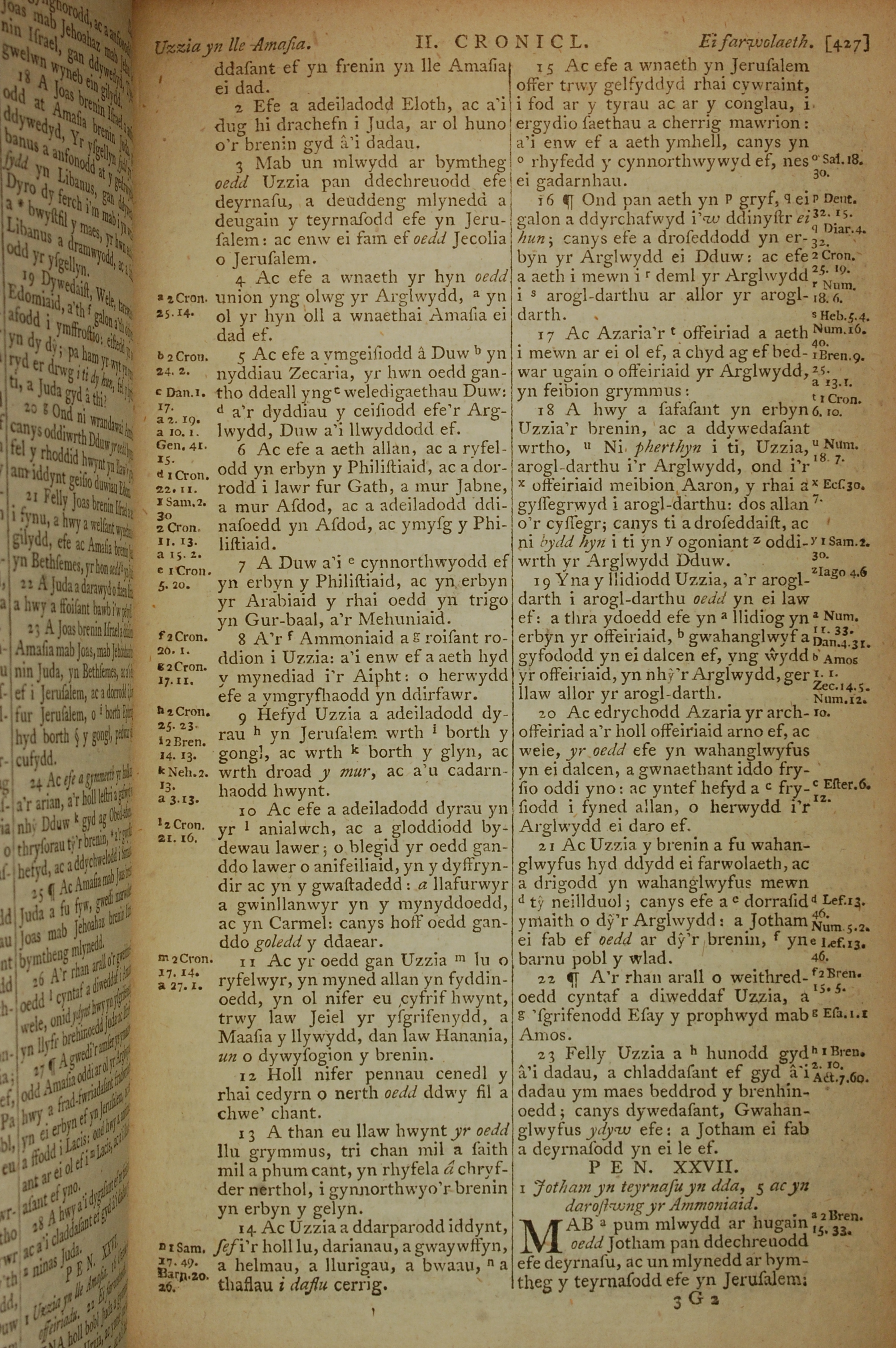 1796年威尔斯文新旧约全书 历代志下 26 章 2 节到 27 章 1 节
