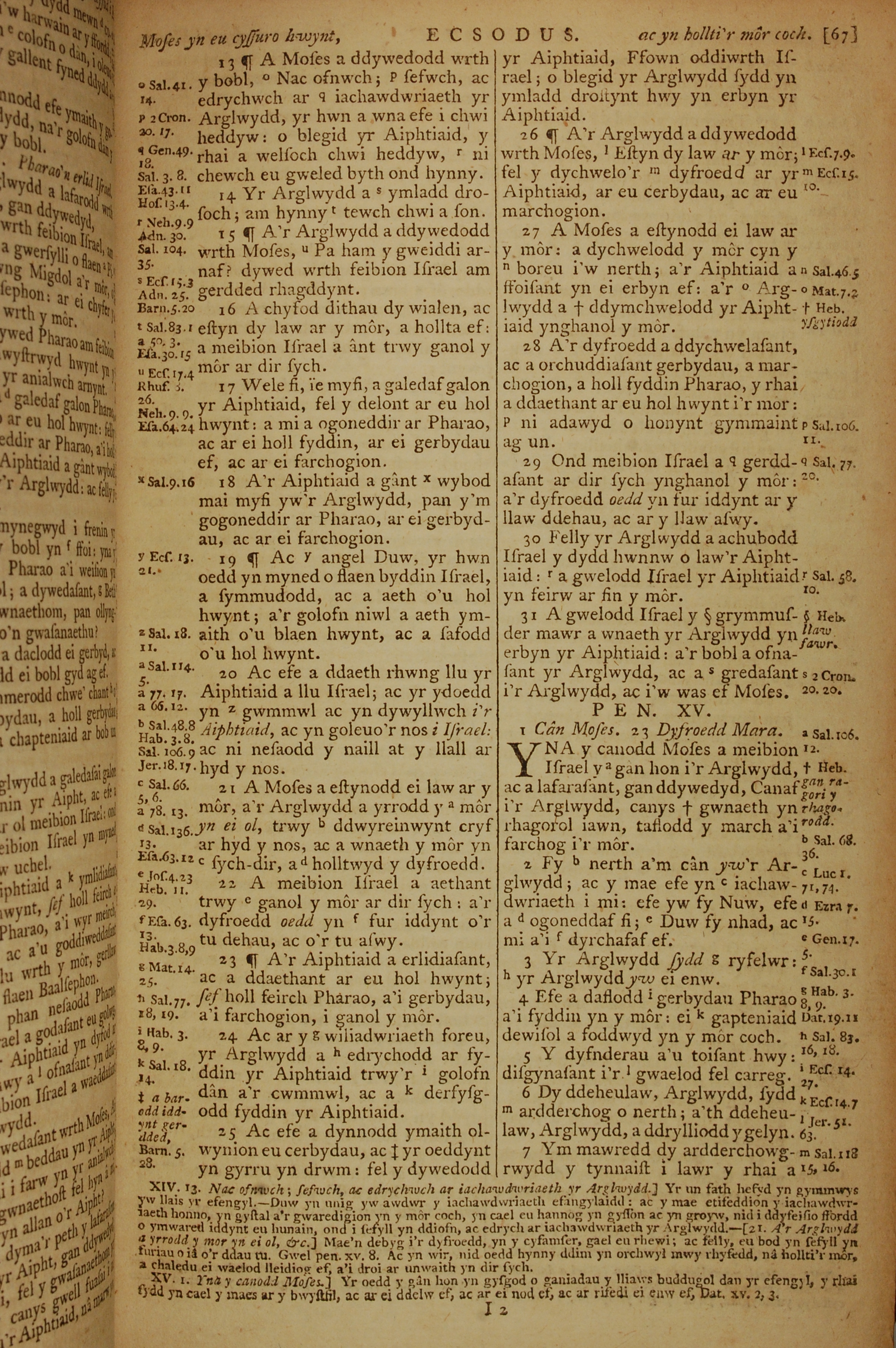 1796年威尔斯文新旧约全书 出埃及记 14 章 13 节到 15 章 7 节