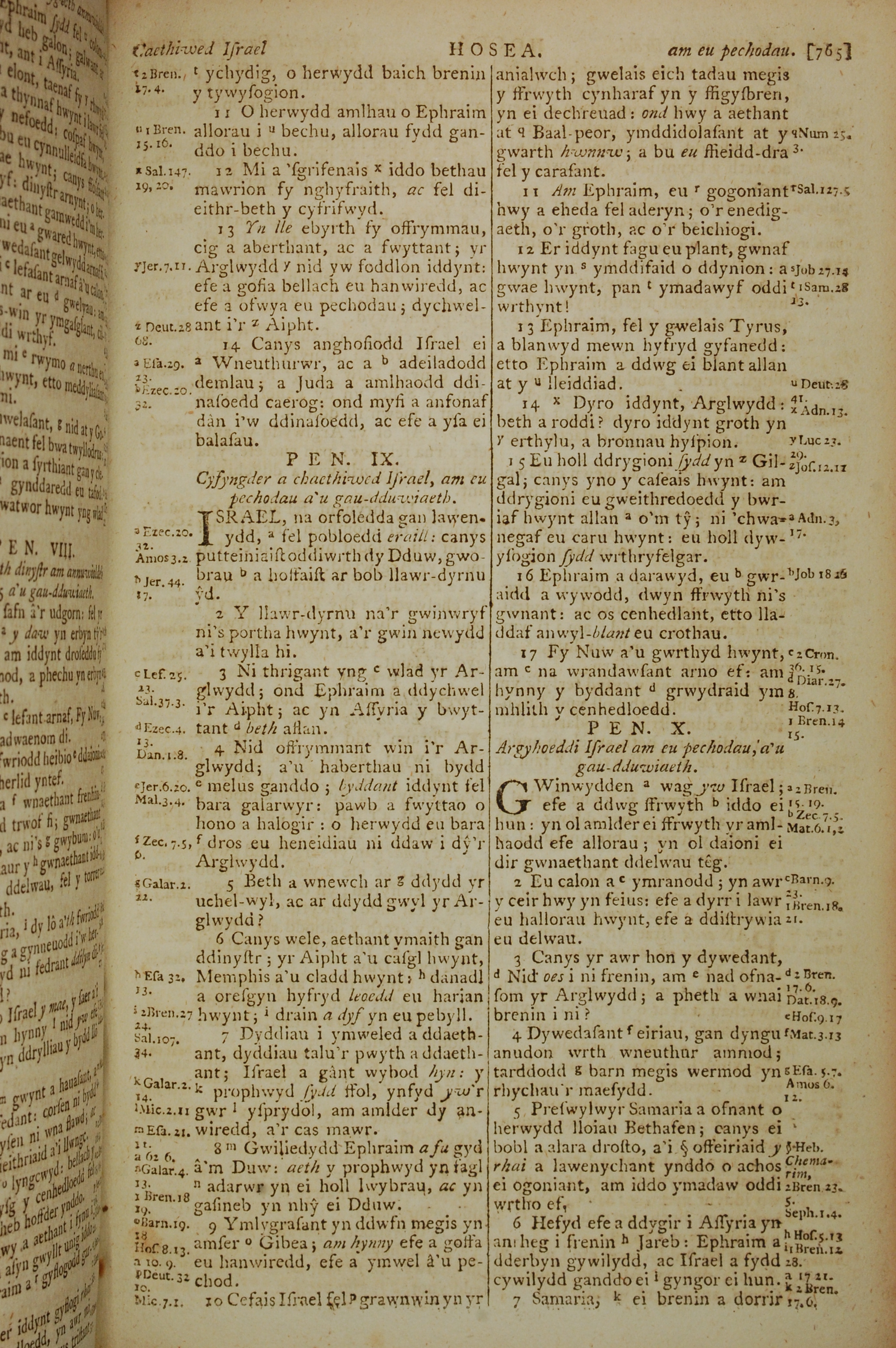 1796年威尔斯文新旧约全书 何西阿书 8 章 11 节到 10 章 7 节