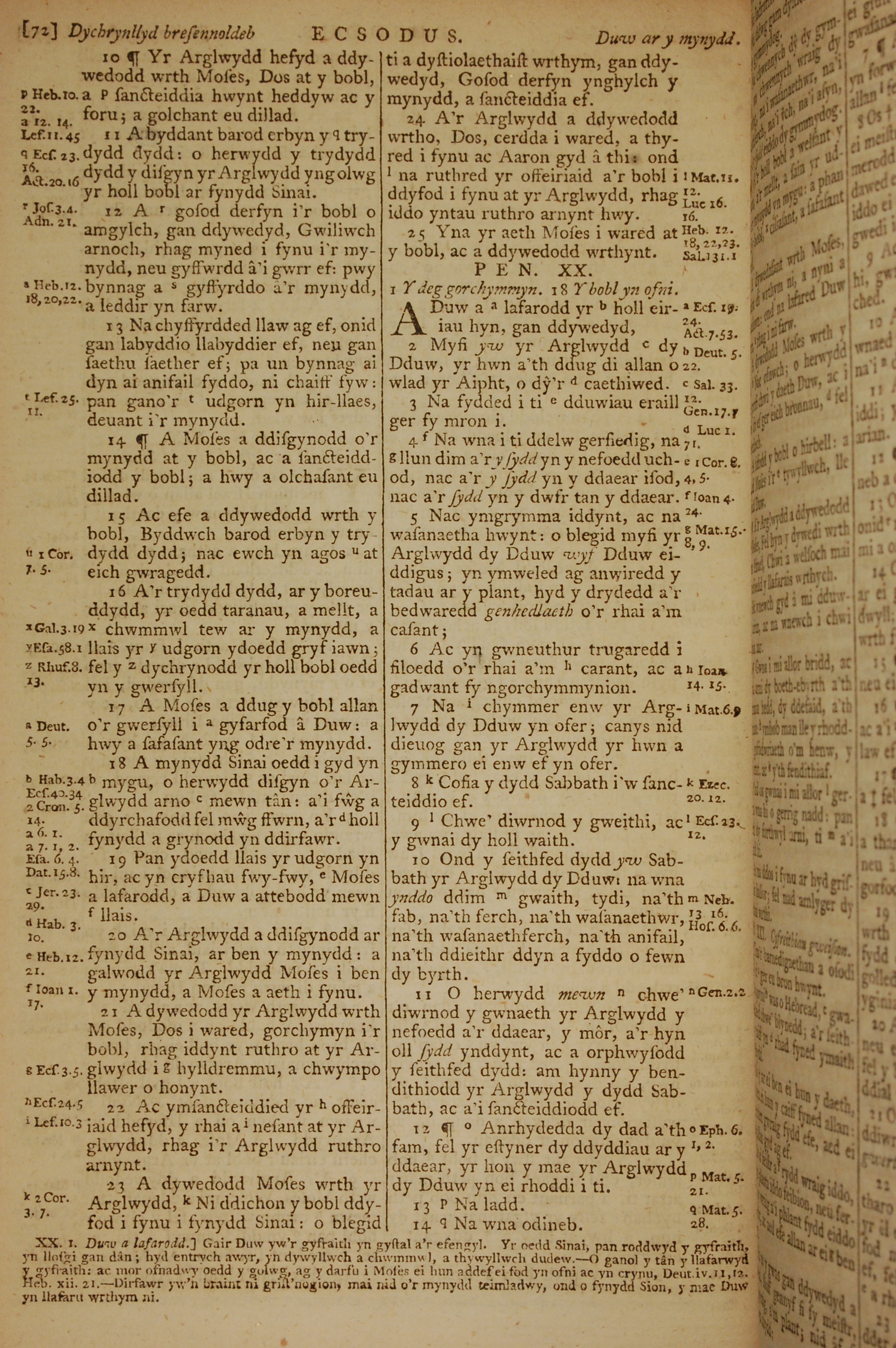 1796年威尔斯文新旧约全书 出埃及记 19 章 10 节到 20 章 14 节