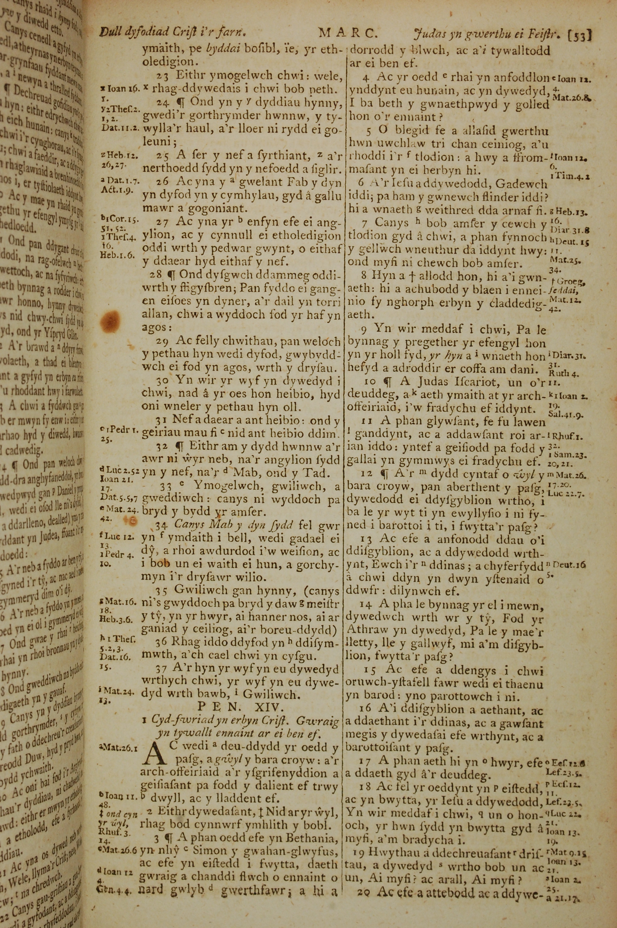 1796年威尔斯文新旧约全书 马可福音 13 章 23 节到 14 章 20 节