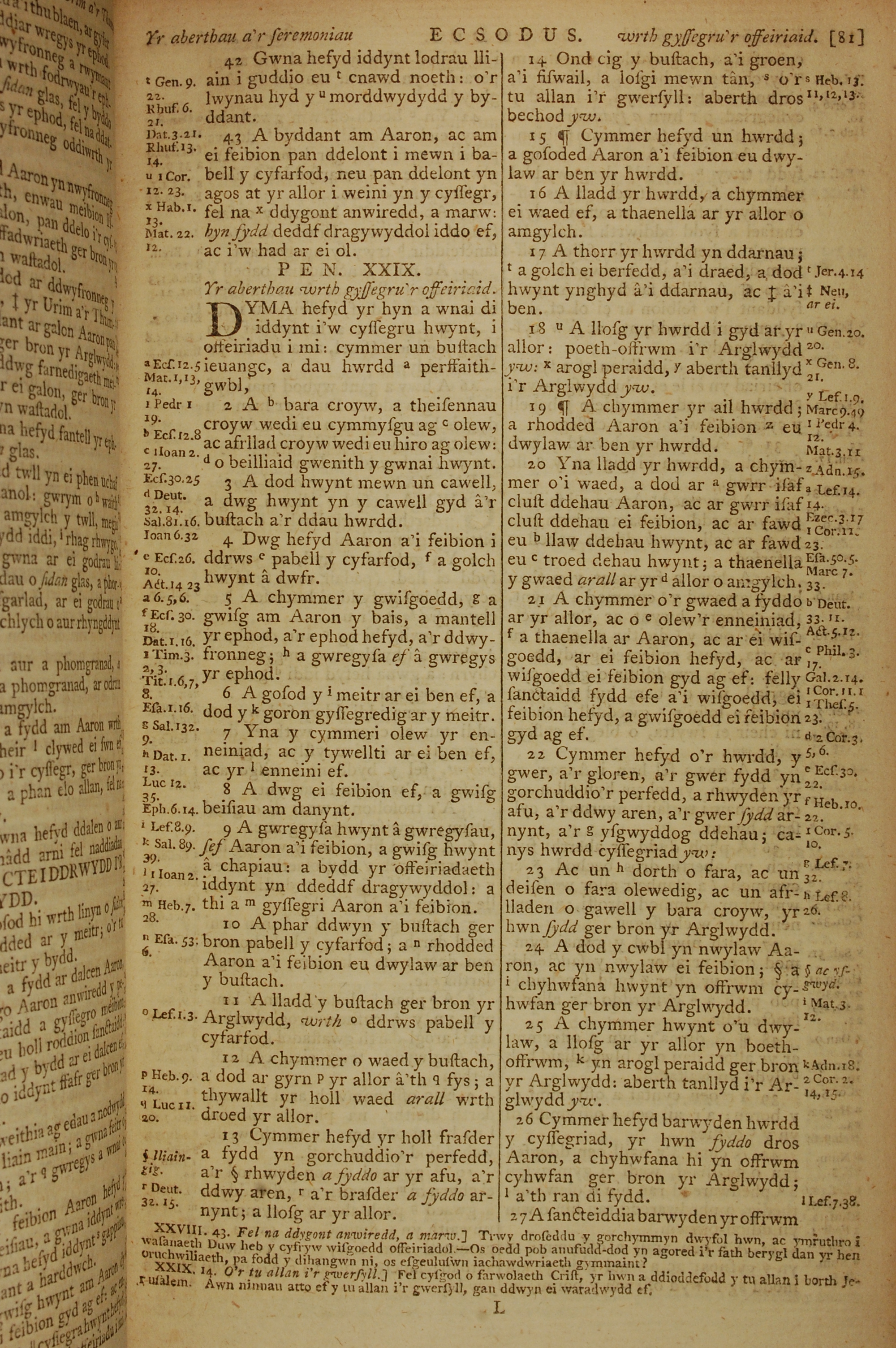 1796年威尔斯文新旧约全书 出埃及记 28 章 42 节到 29 章 27 节