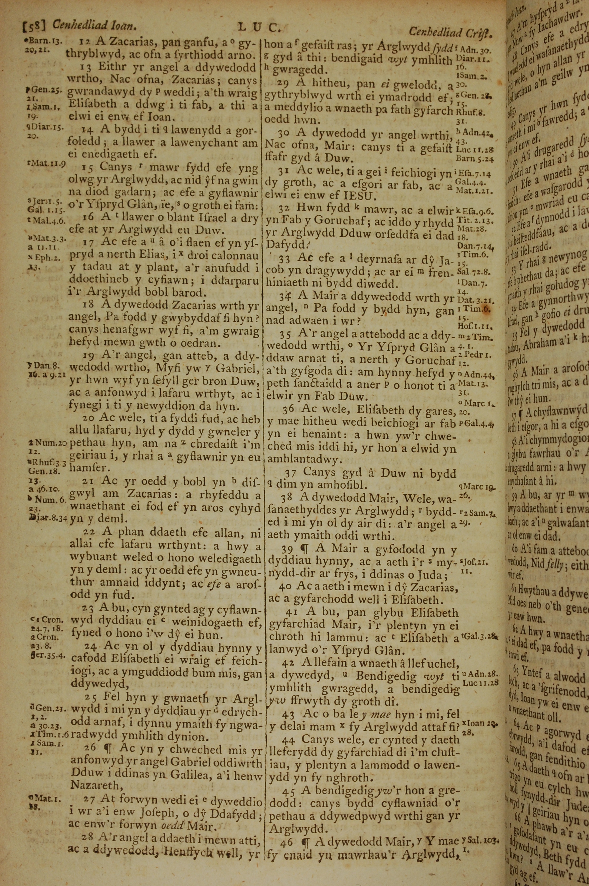 1796年威尔斯文新旧约全书 路加福音 1 章 12 节到 1 章 46 节