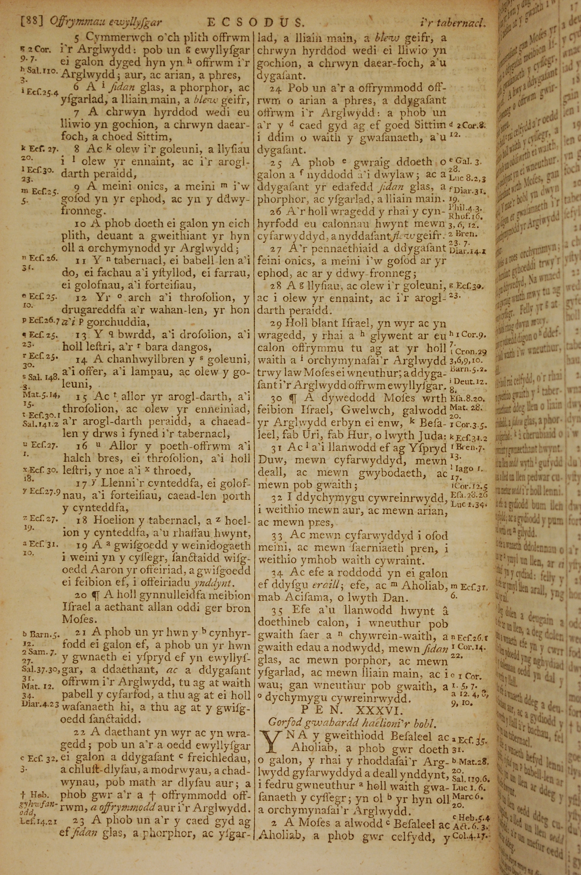 1796年威尔斯文新旧约全书 出埃及记 35 章 5 节到 36 章 2 节