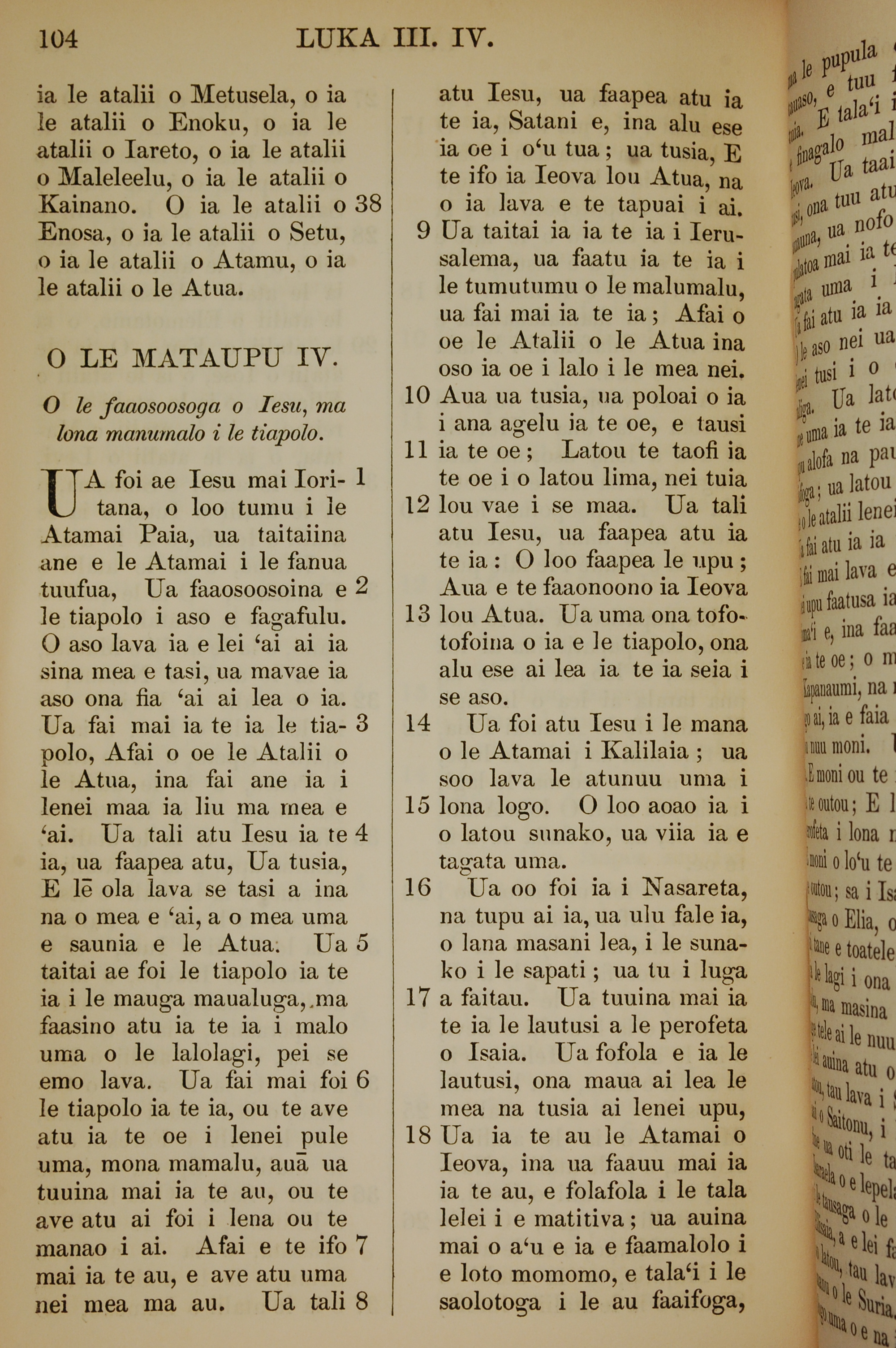 1849年萨摩亚语新约全书 路加福音 3 章 38 节到 4 章 18 节