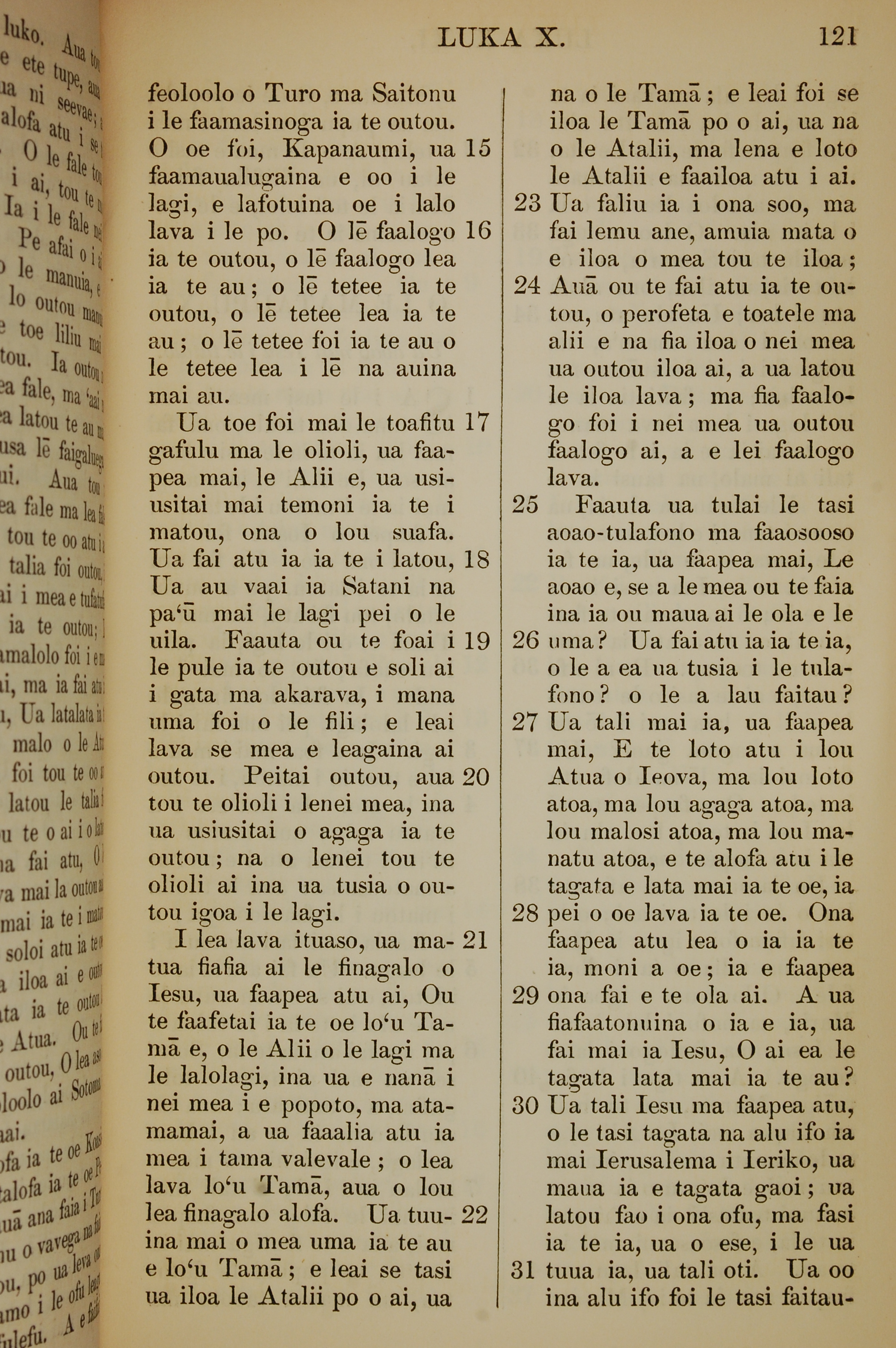 1849年萨摩亚语新约全书 路加福音 10 章 15 节到 10 章 31 节