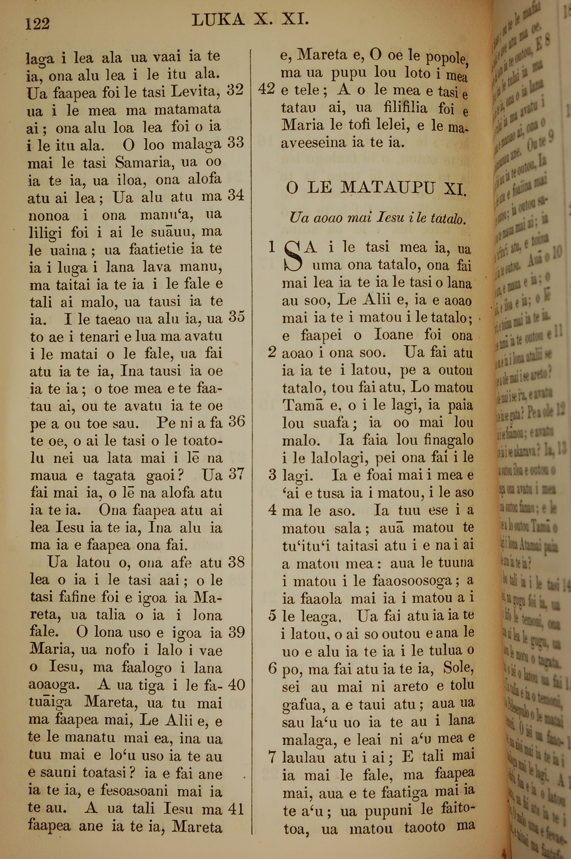 1849年萨摩亚语新约全书 路加福音 10 章 32 节到 11 章 7 节