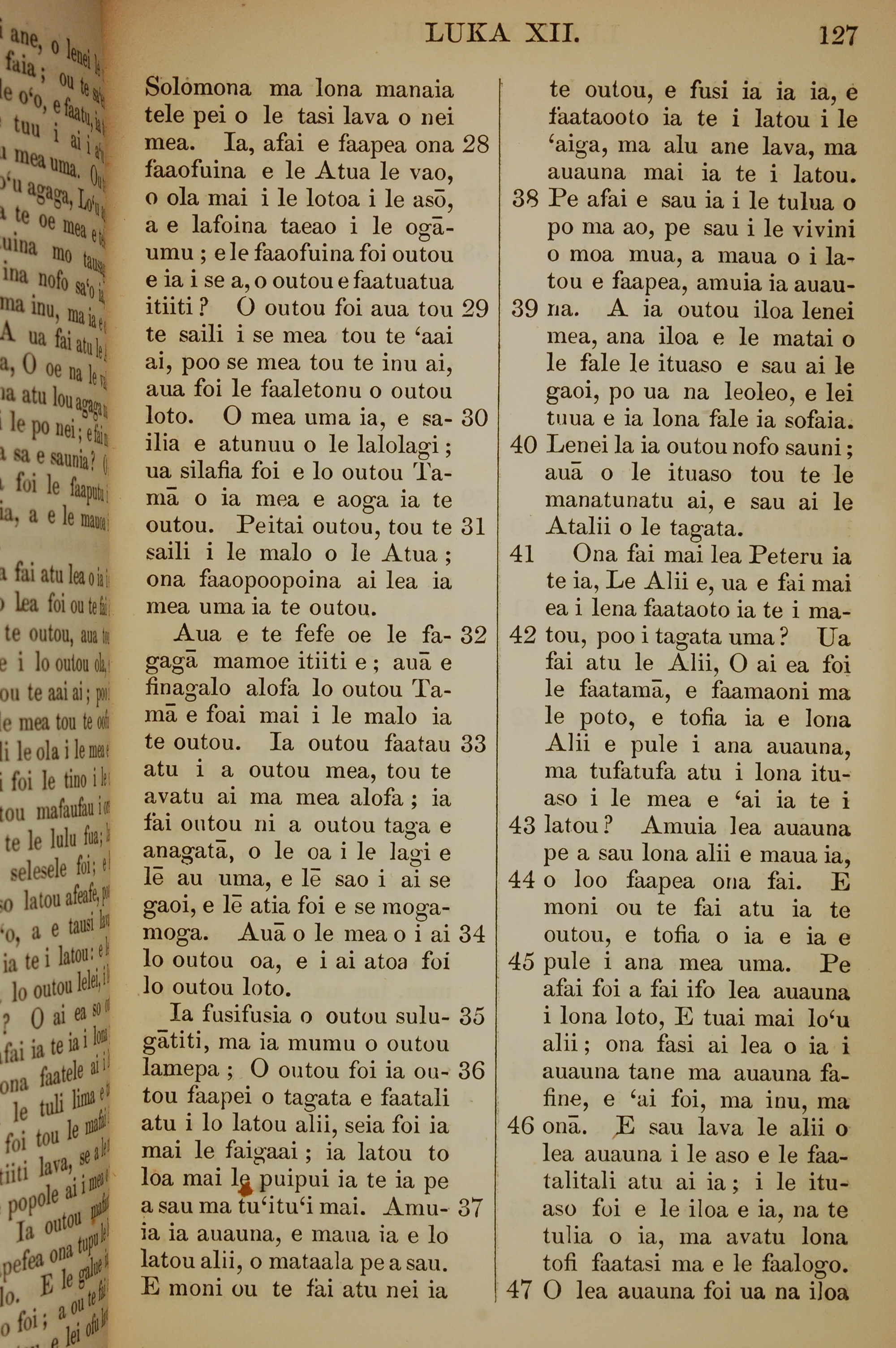 1849年萨摩亚语新约全书 路加福音 12 章 28 节到 12 章 47 节