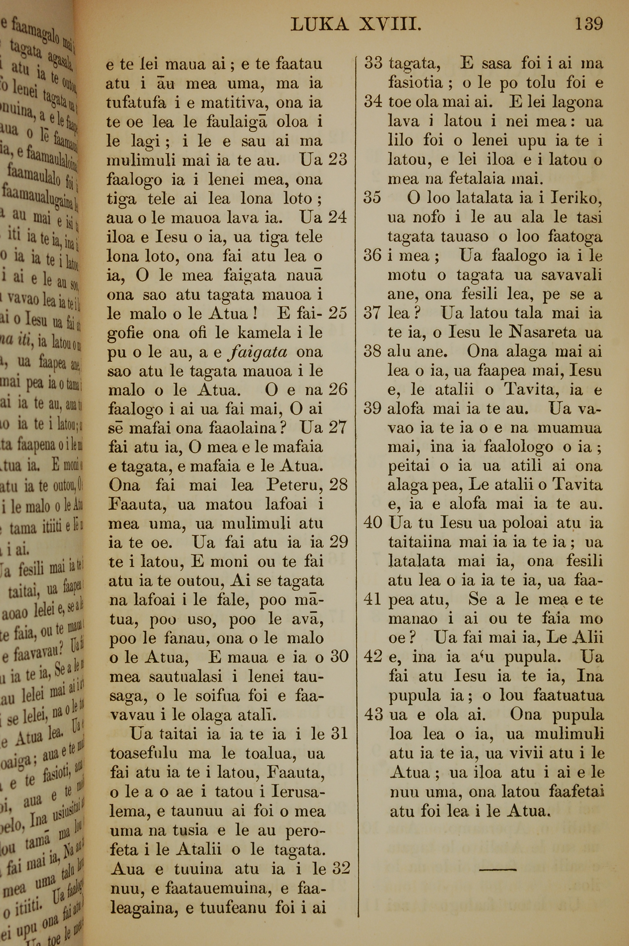 1849年萨摩亚语新约全书 路加福音 18 章 23 节到 18 章 43 节