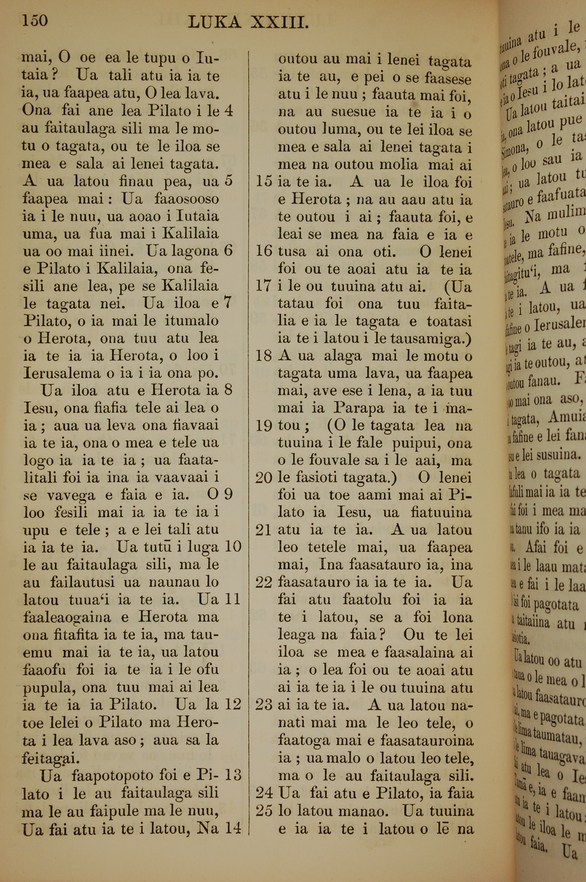 1849年萨摩亚语新约全书 路加福音 23 章 4 节到 23 章 25 节
