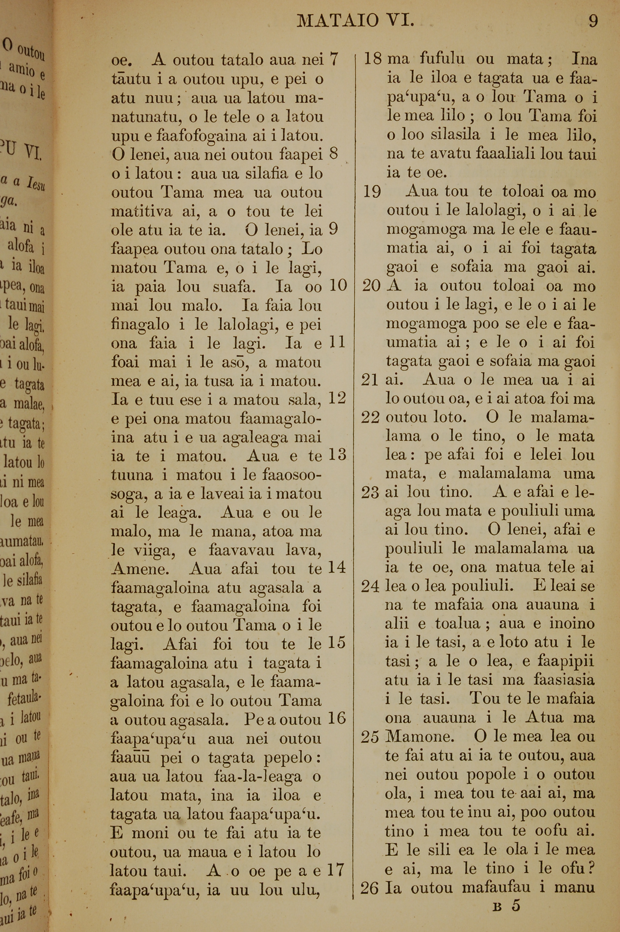 1849年萨摩亚语新约全书 马太福音 6 章 7 节到 6 章 26 节