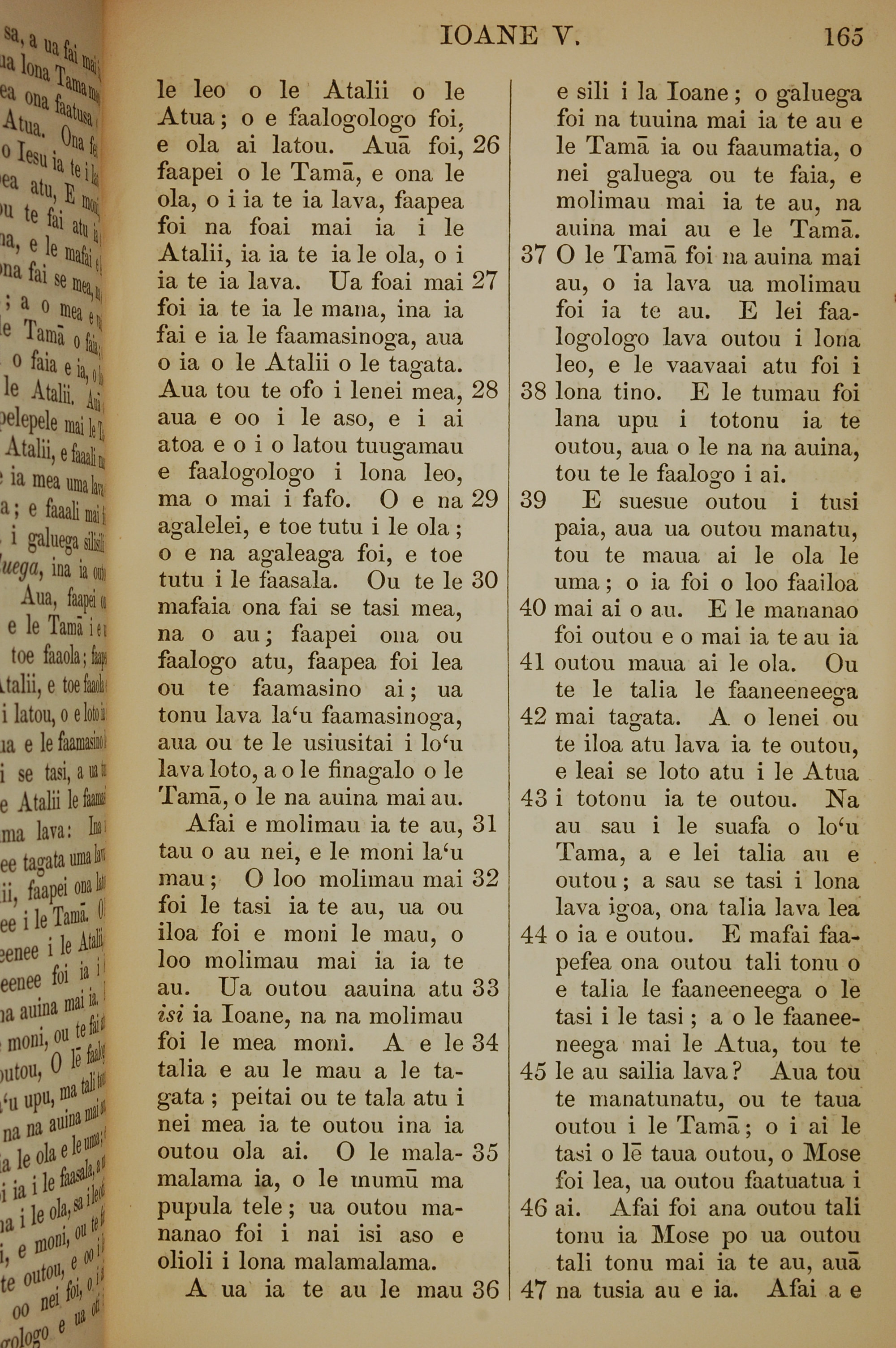 1849年萨摩亚语新约全书 约翰福音 5 章 26 节到 5 章 47 节