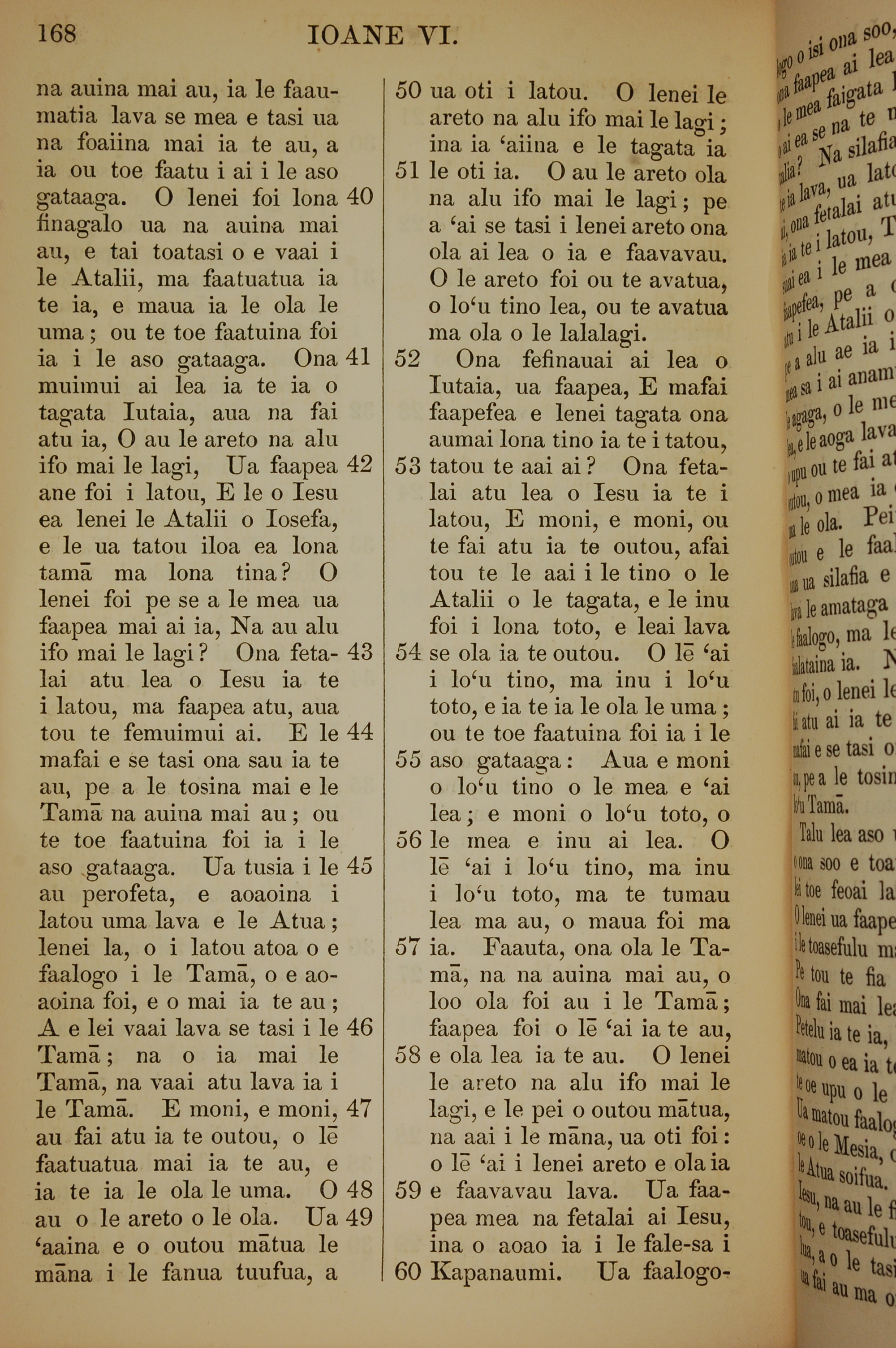 1849年萨摩亚语新约全书 约翰福音 6 章 40 节到 6 章 60 节