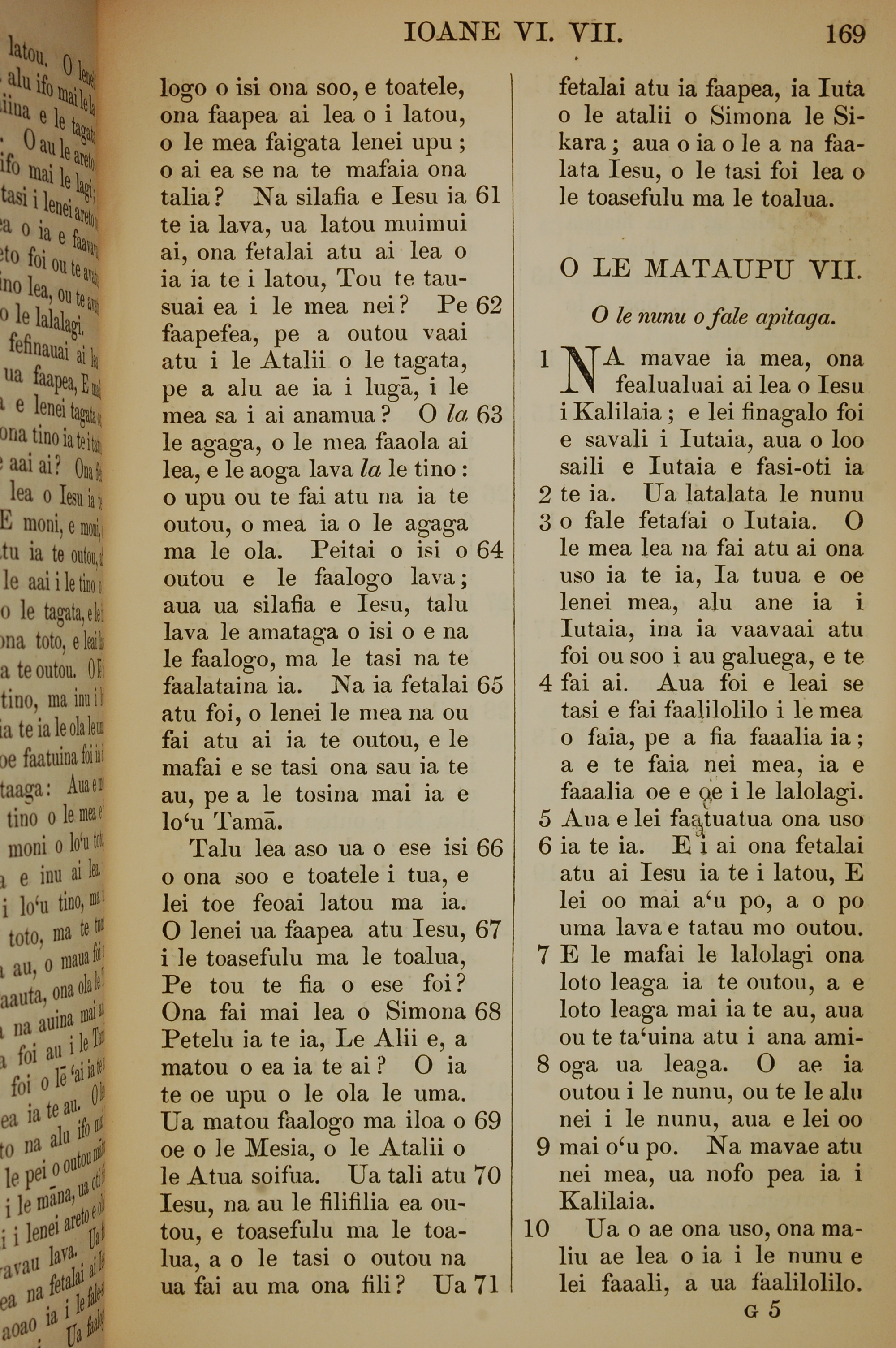 1849年萨摩亚语新约全书 约翰福音 6 章 61 节到 7 章 10 节