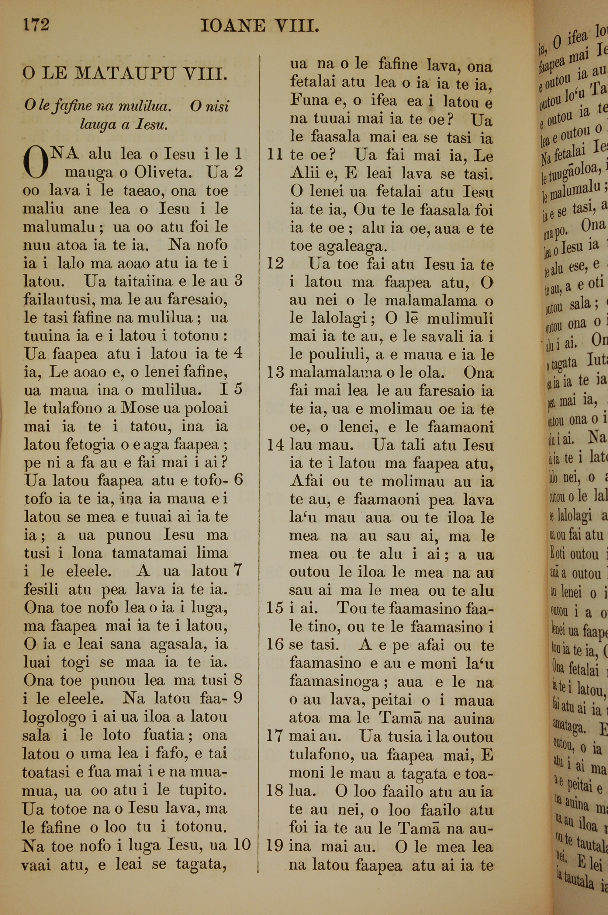 1849年萨摩亚语新约全书 约翰福音 8 章 1 节到 8 章 19 节