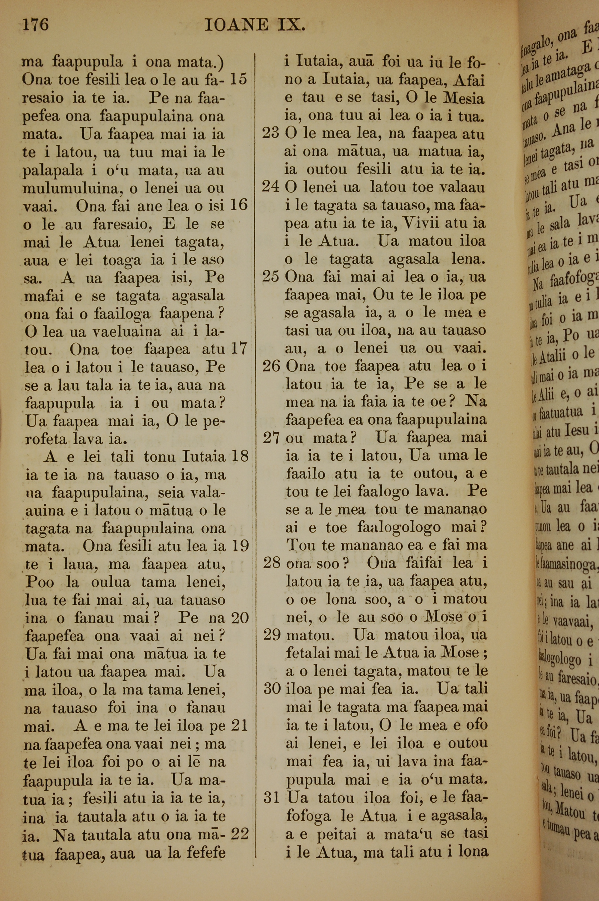 1849年萨摩亚语新约全书 约翰福音 9 章 15 节到 9 章 31 节
