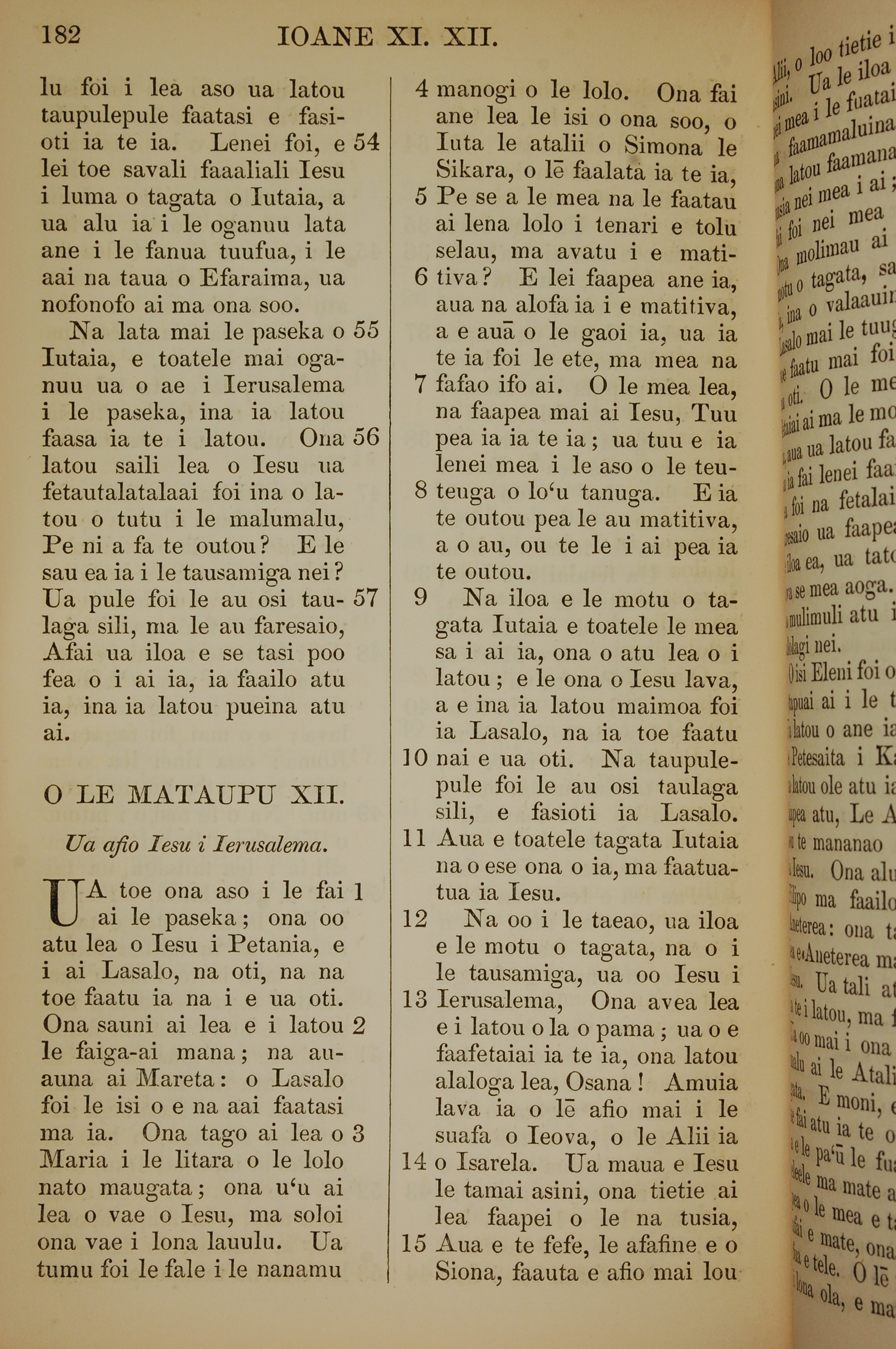 1849年萨摩亚语新约全书 约翰福音 11 章 54 节到 12 章 15 节