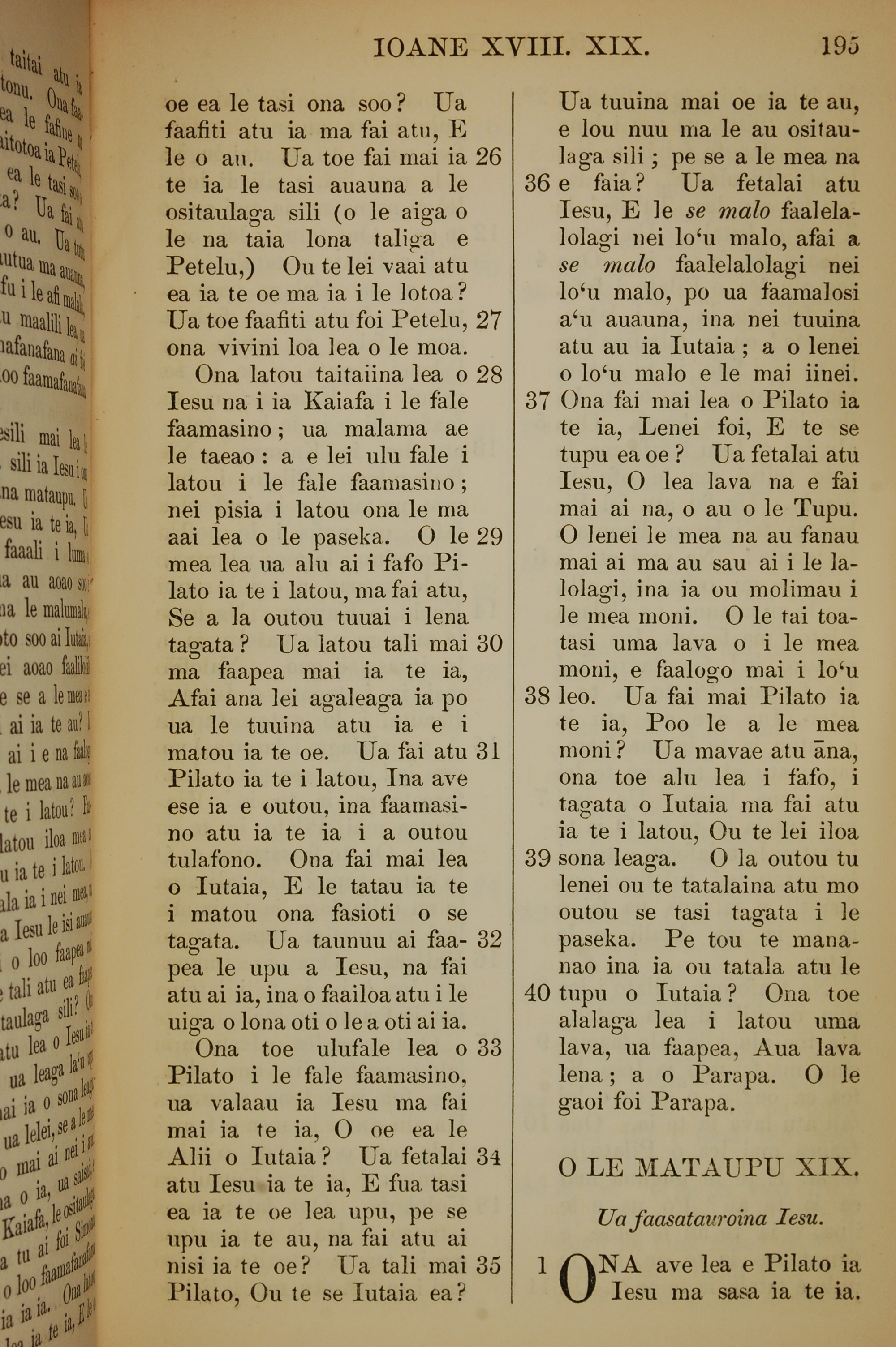 1849年萨摩亚语新约全书 约翰福音 18 章 26 节到 19 章 1 节