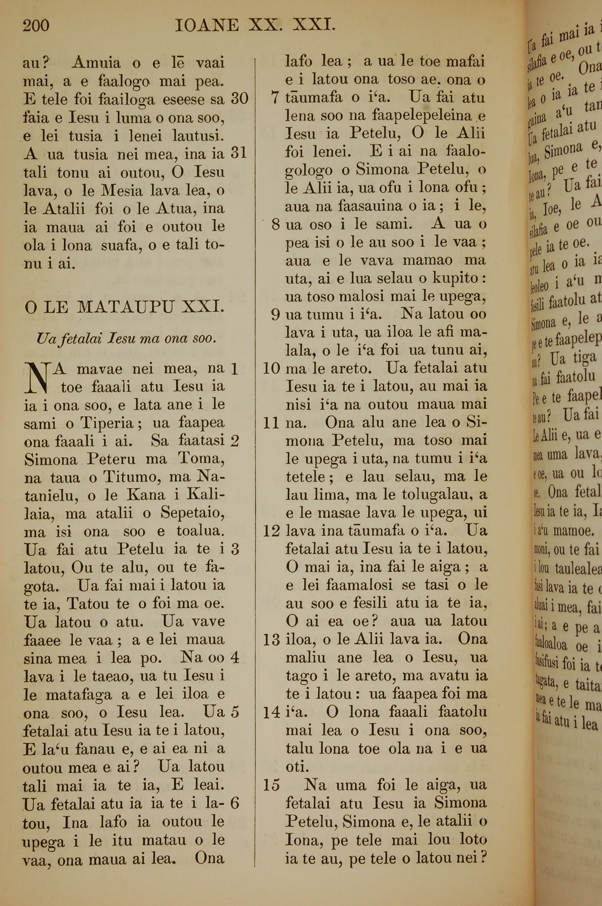 1849年萨摩亚语新约全书 约翰福音 20 章 30 节到 21 章 15 节