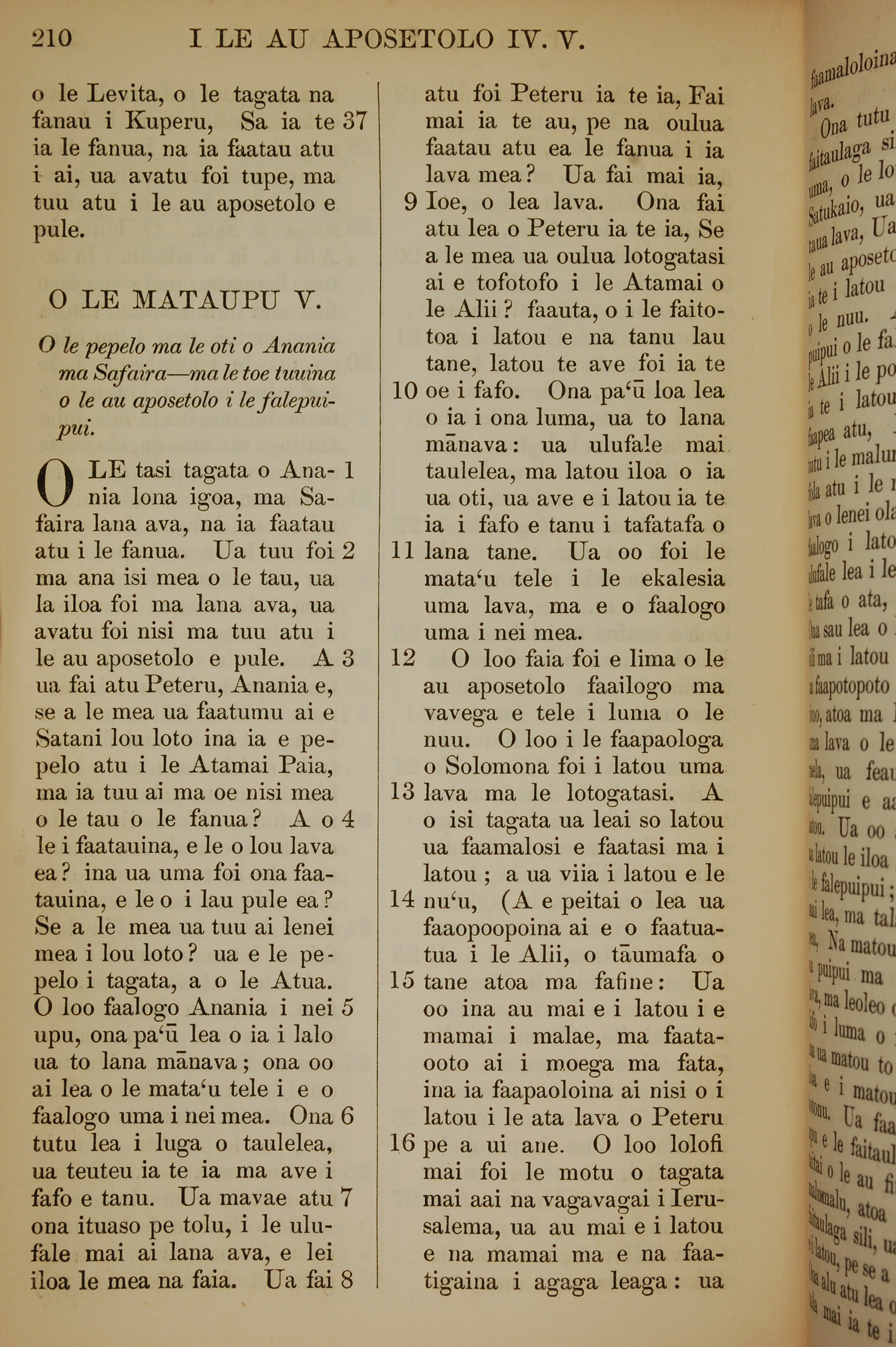 1849年萨摩亚语新约全书 使徒行传 4 章 37 节到 5 章 16 节