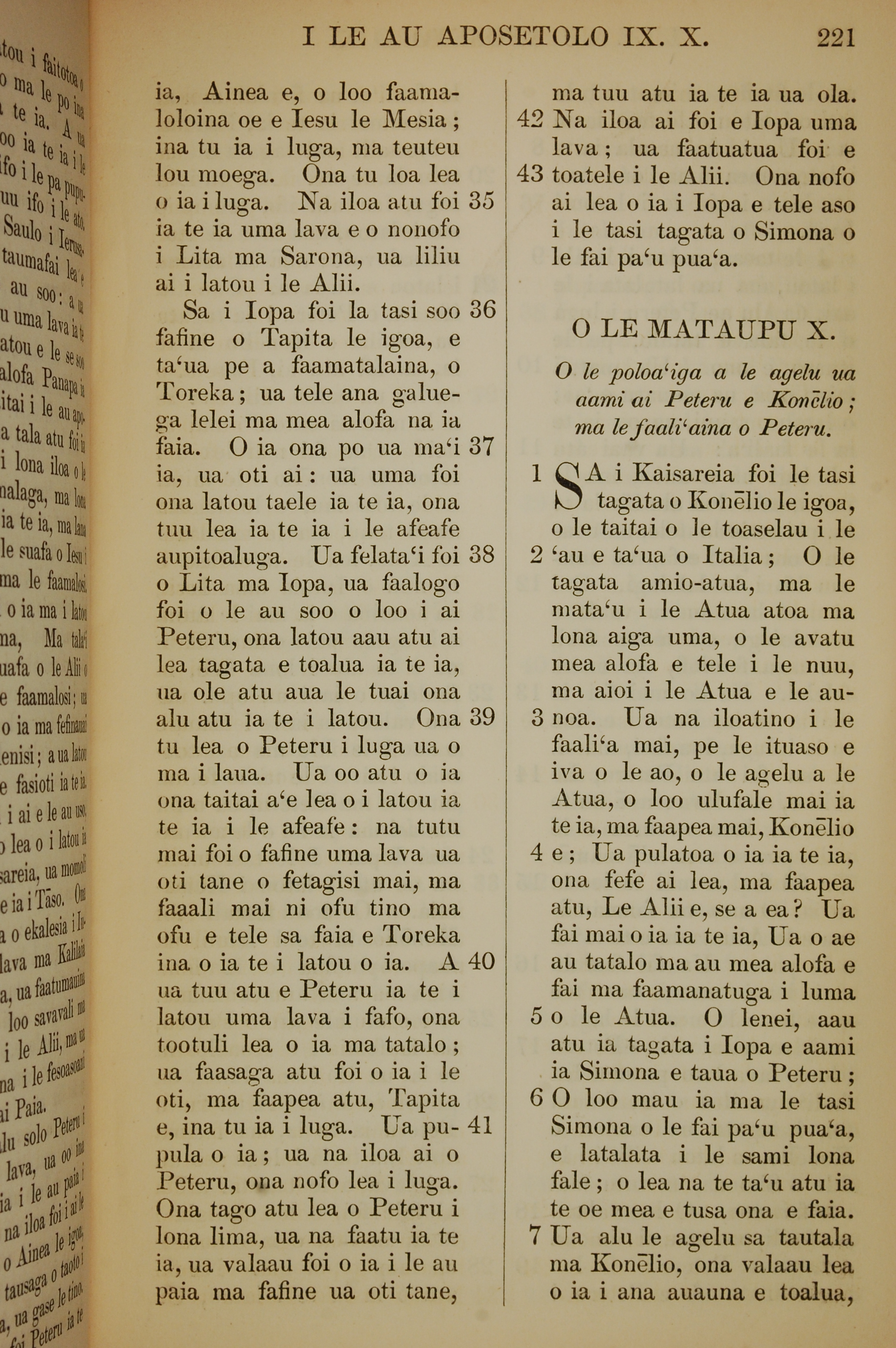 1849年萨摩亚语新约全书 使徒行传 9 章 35 节到 10 章 7 节