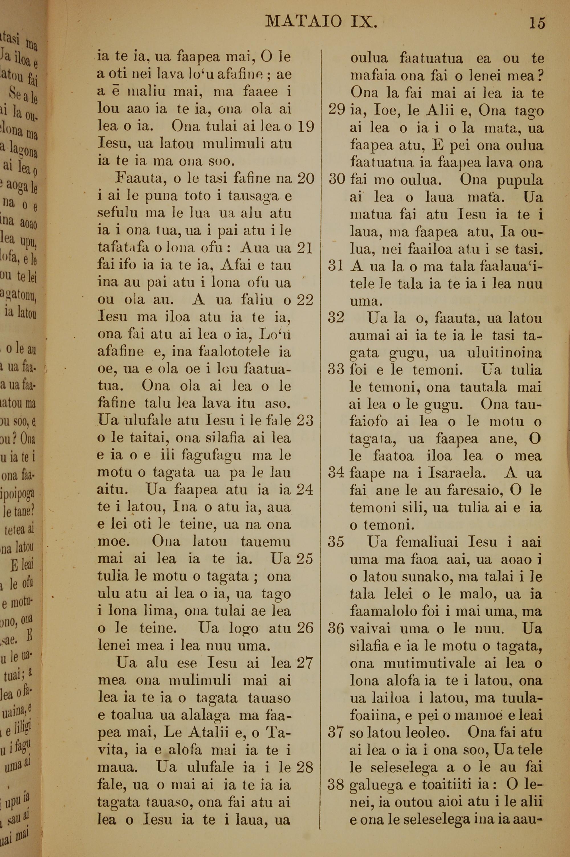 1849年萨摩亚语新约全书 马太福音 9 章 19 节到 9 章 38 节