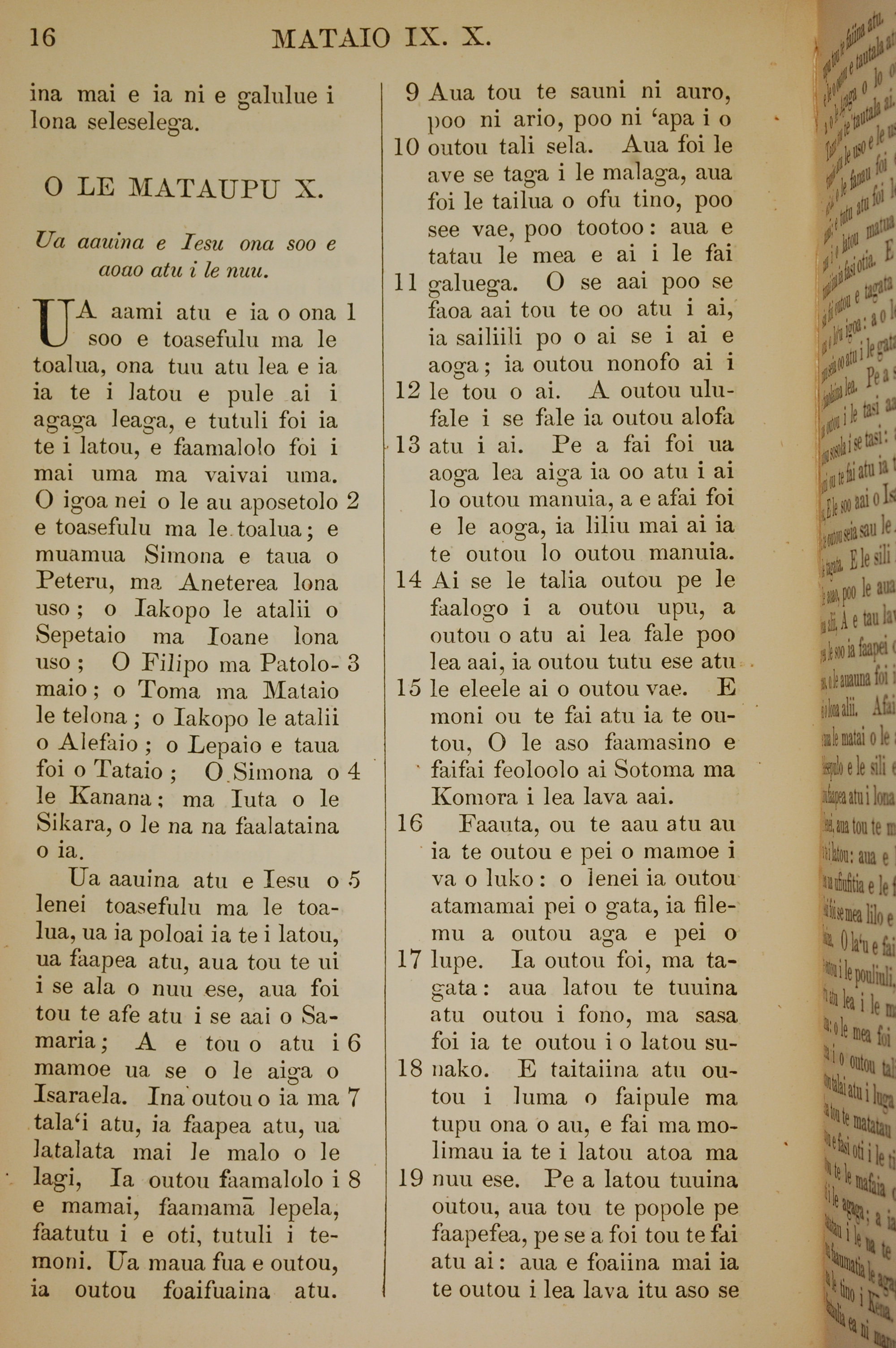 1849年萨摩亚语新约全书 马太福音 10 章 1 节到 10 章 19 节