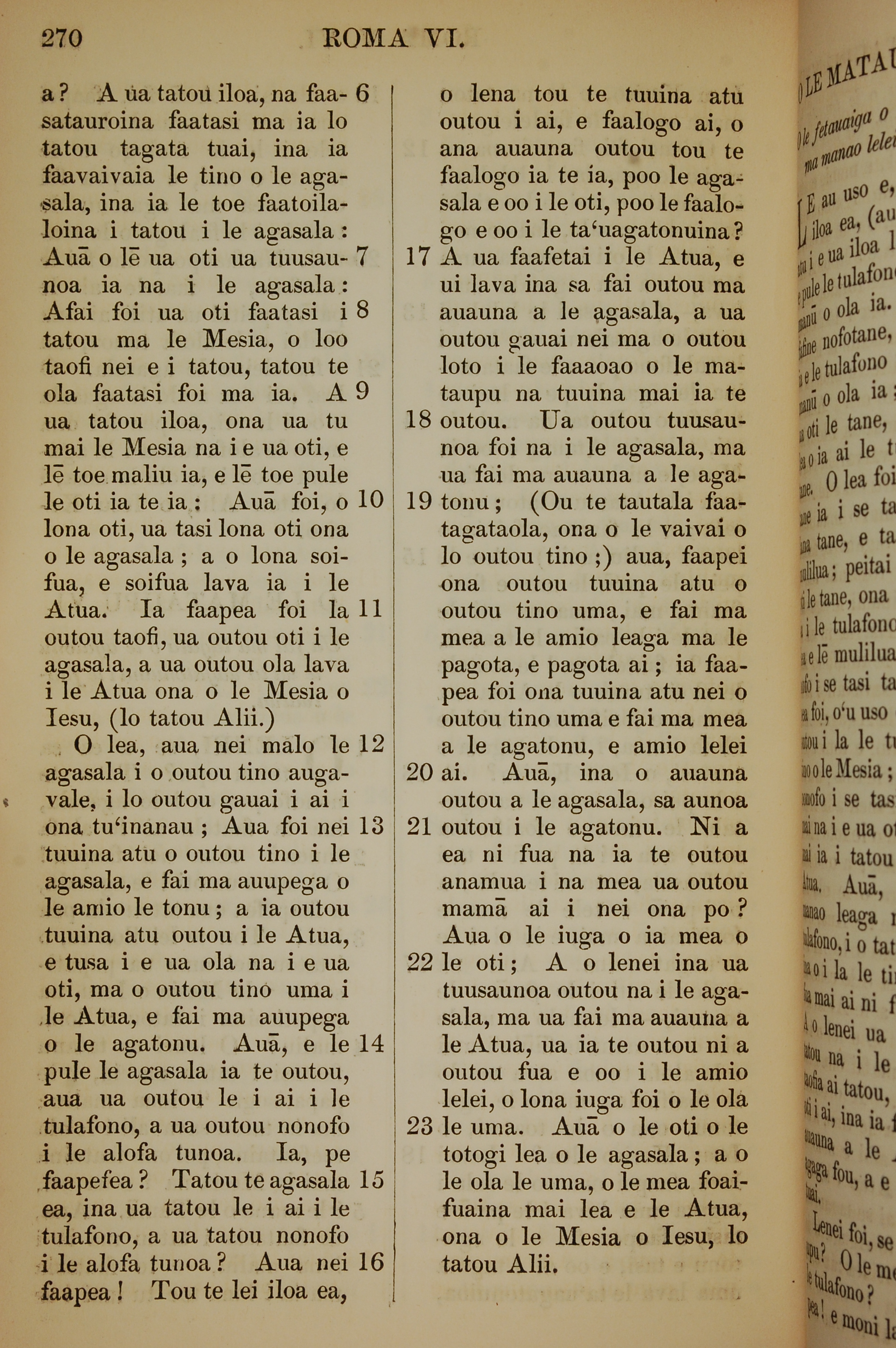 1849年萨摩亚语新约全书 罗马书 6 章 6 节到 6 章 23 节