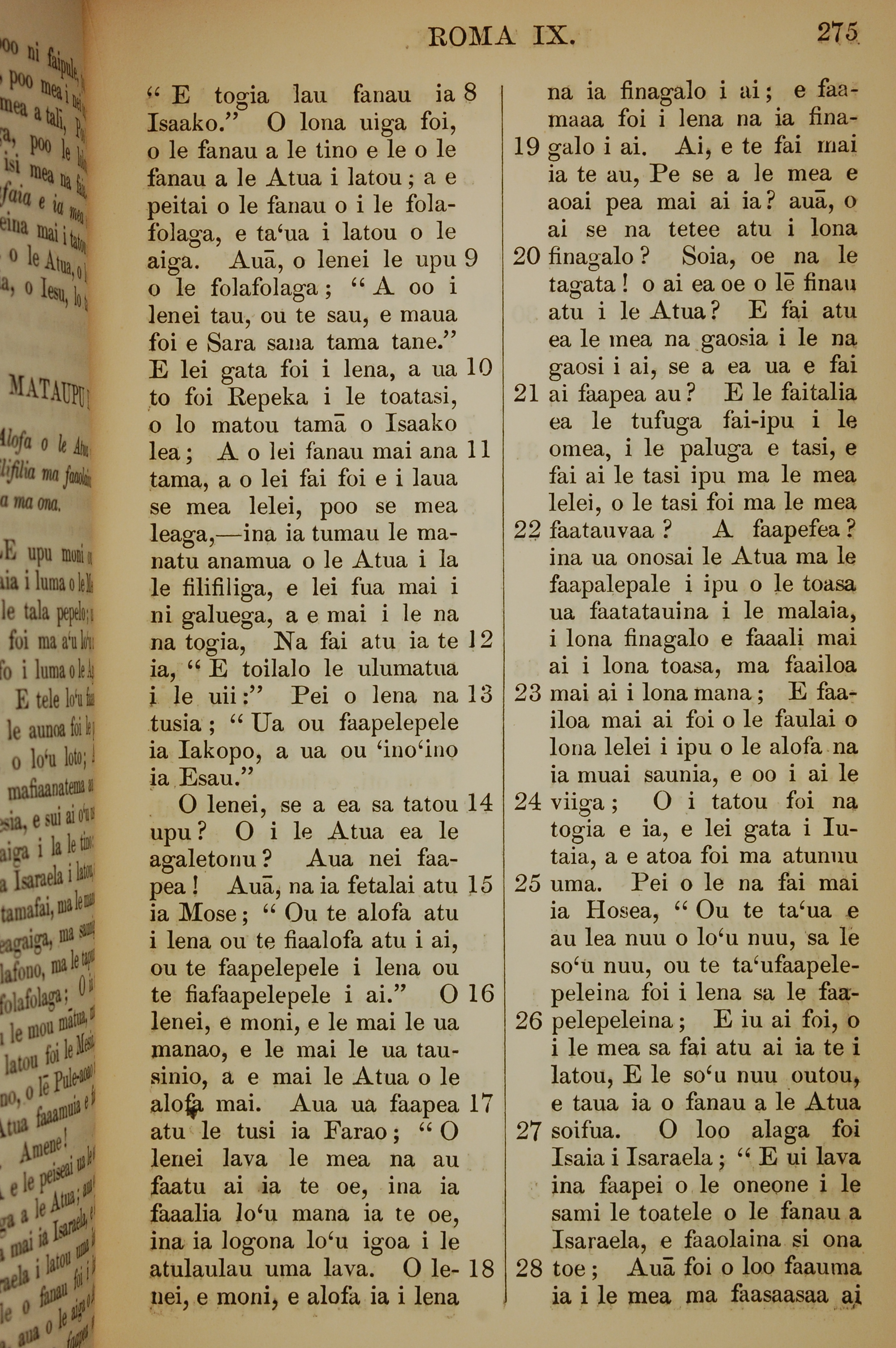 1849年萨摩亚语新约全书 罗马书 9 章 8 节到 9 章 28 节
