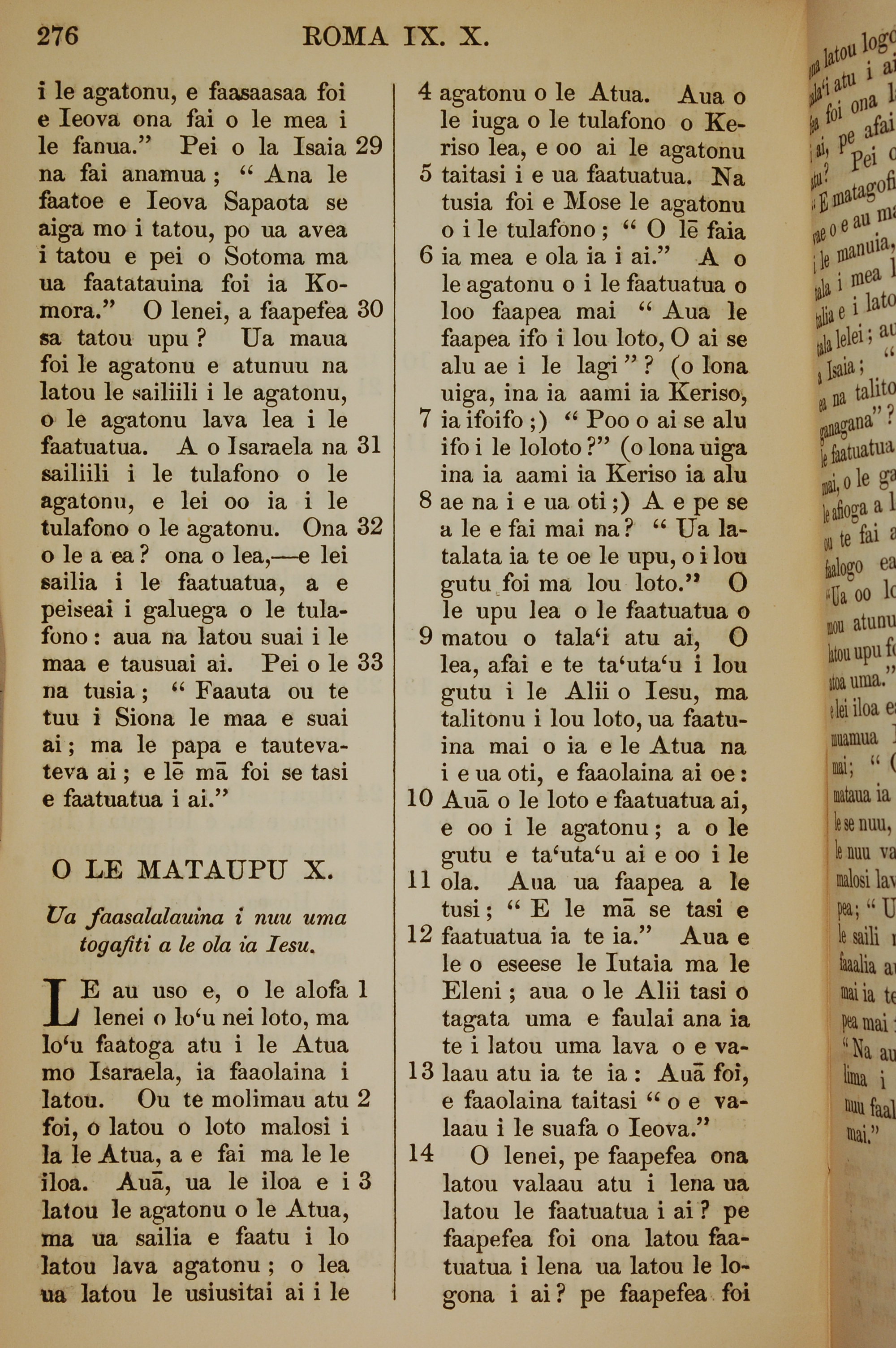 1849年萨摩亚语新约全书 罗马书 9 章 29 节到 10 章 14 节