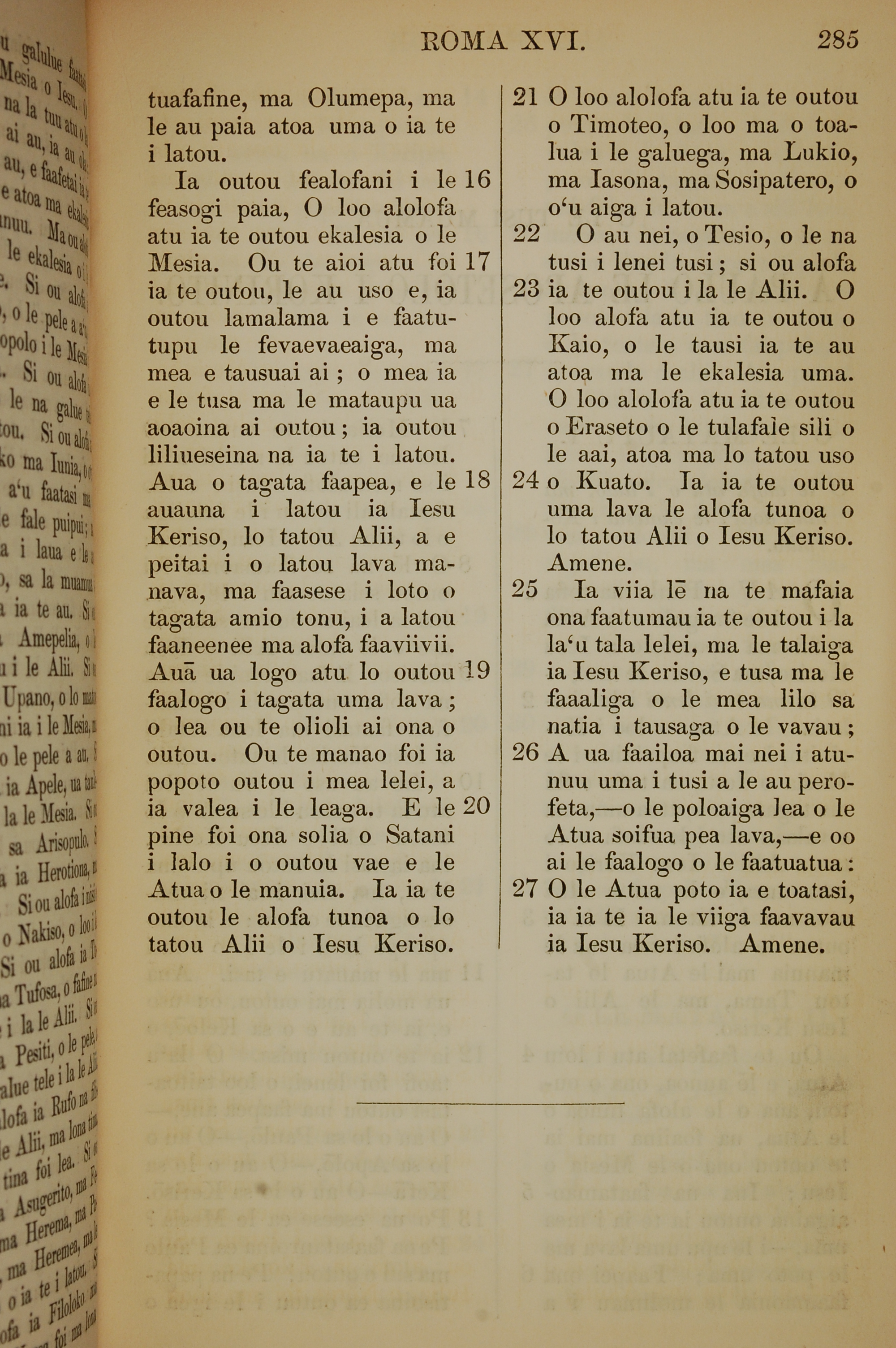 1849年萨摩亚语新约全书 罗马书 16 章 16 节到 16 章 27 节