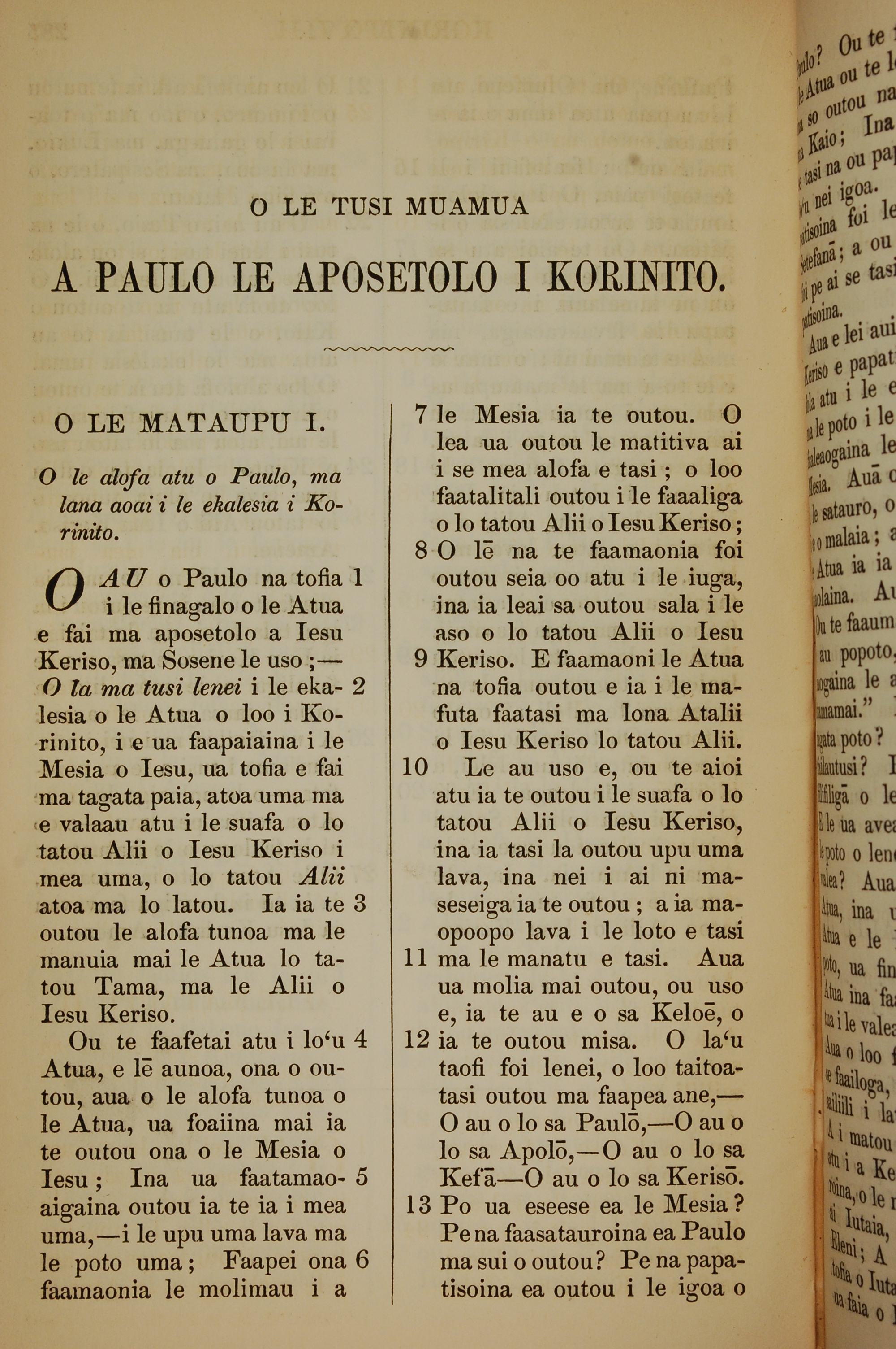 1849年萨摩亚语新约全书 哥林多前书 1 章 1 节到 1 章 13 节