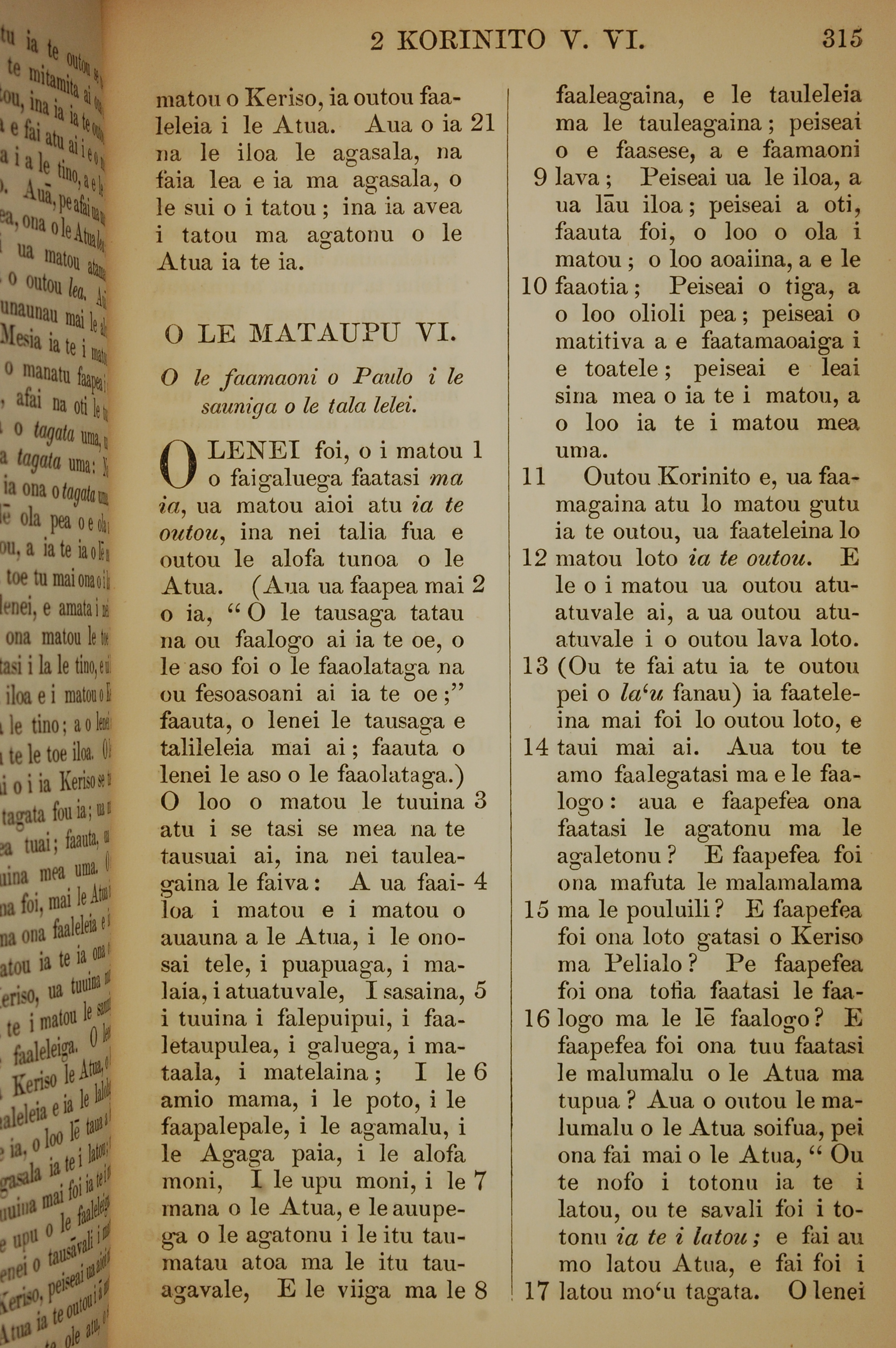 1849年萨摩亚语新约全书 哥林多后书 5 章 21 节到 6 章 17 节