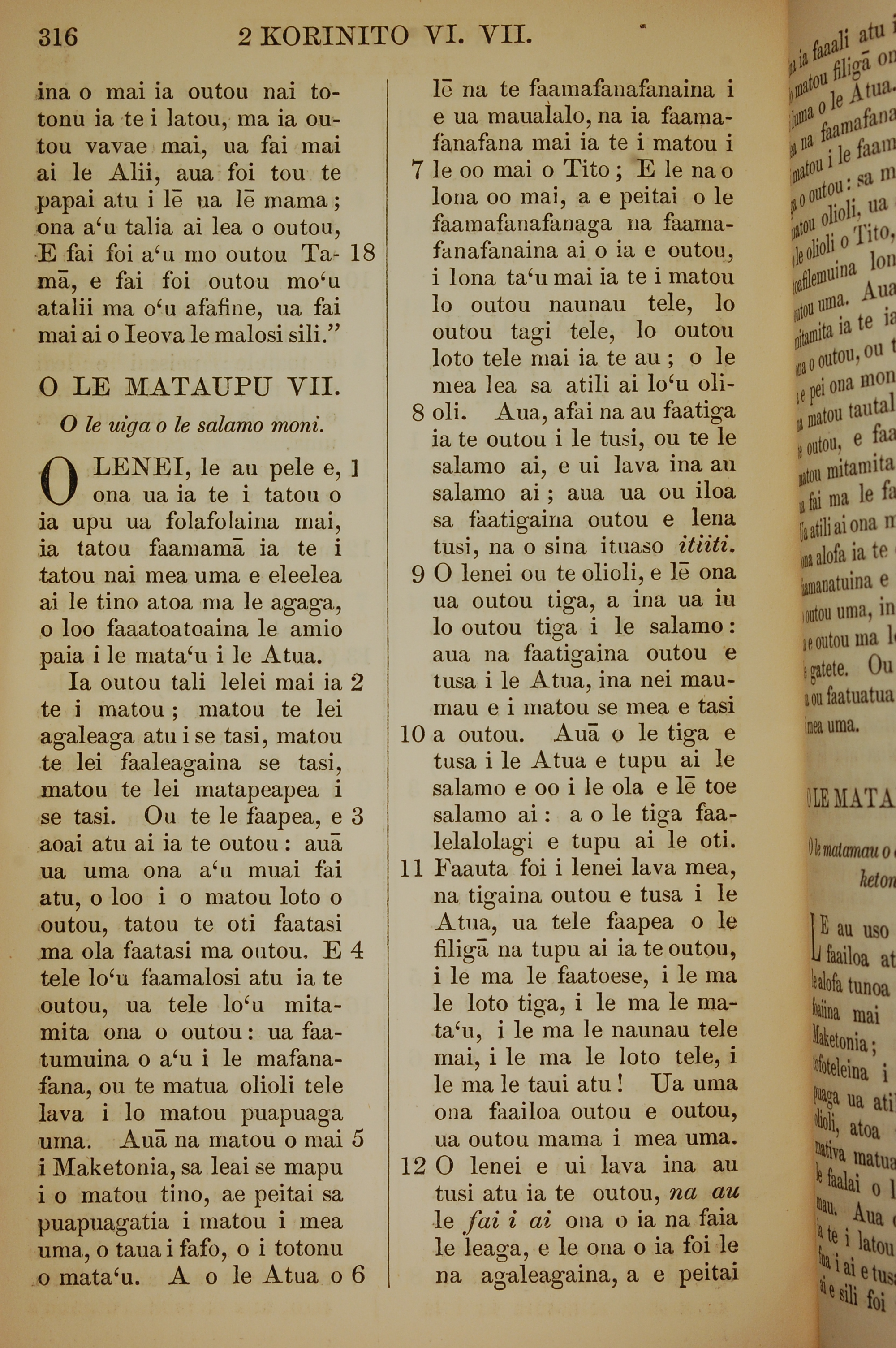 1849年萨摩亚语新约全书 哥林多后书 6 章 18 节到 7 章 12 节