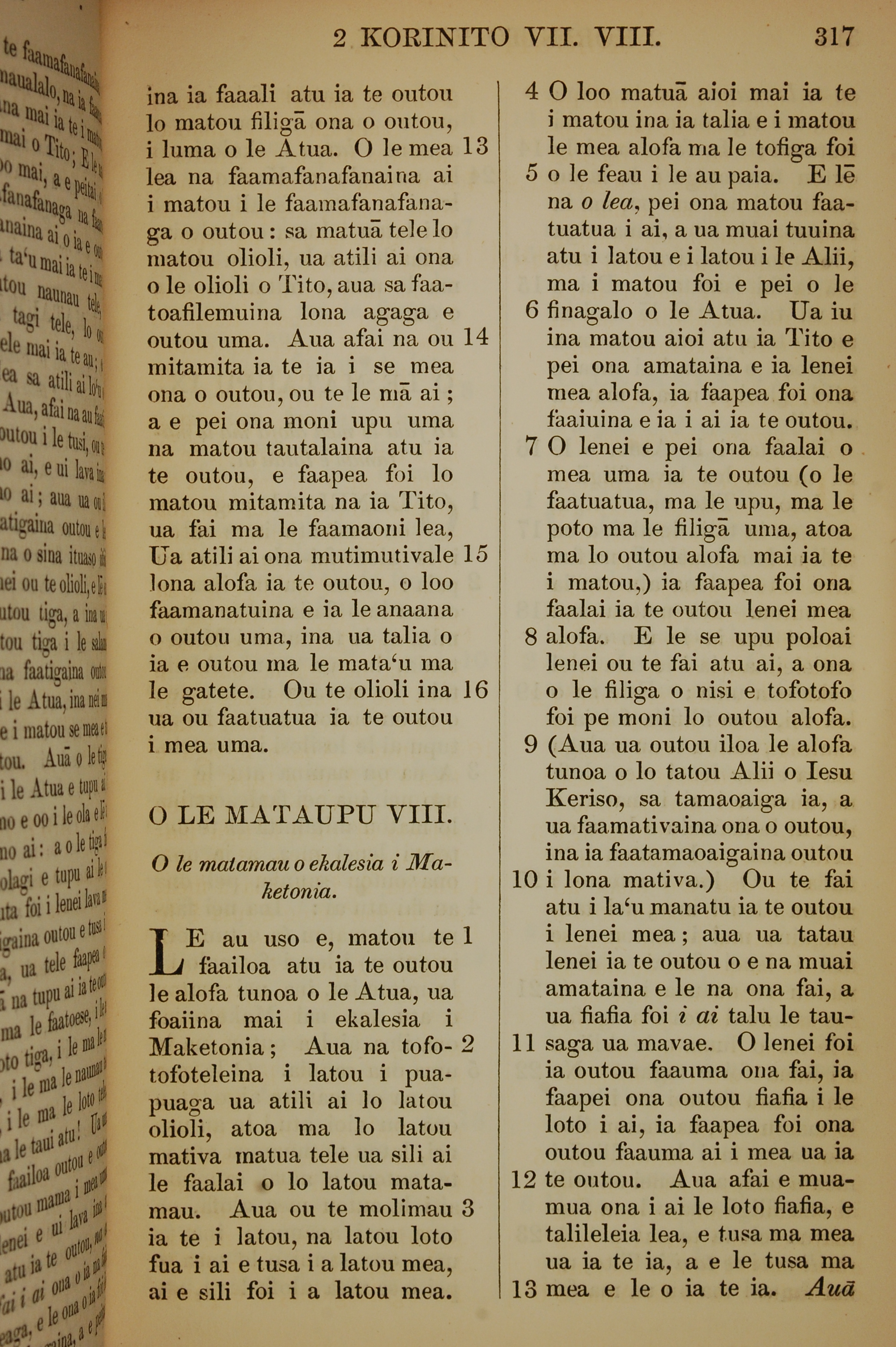 1849年萨摩亚语新约全书 哥林多后书 7 章 13 节到 8 章 13 节