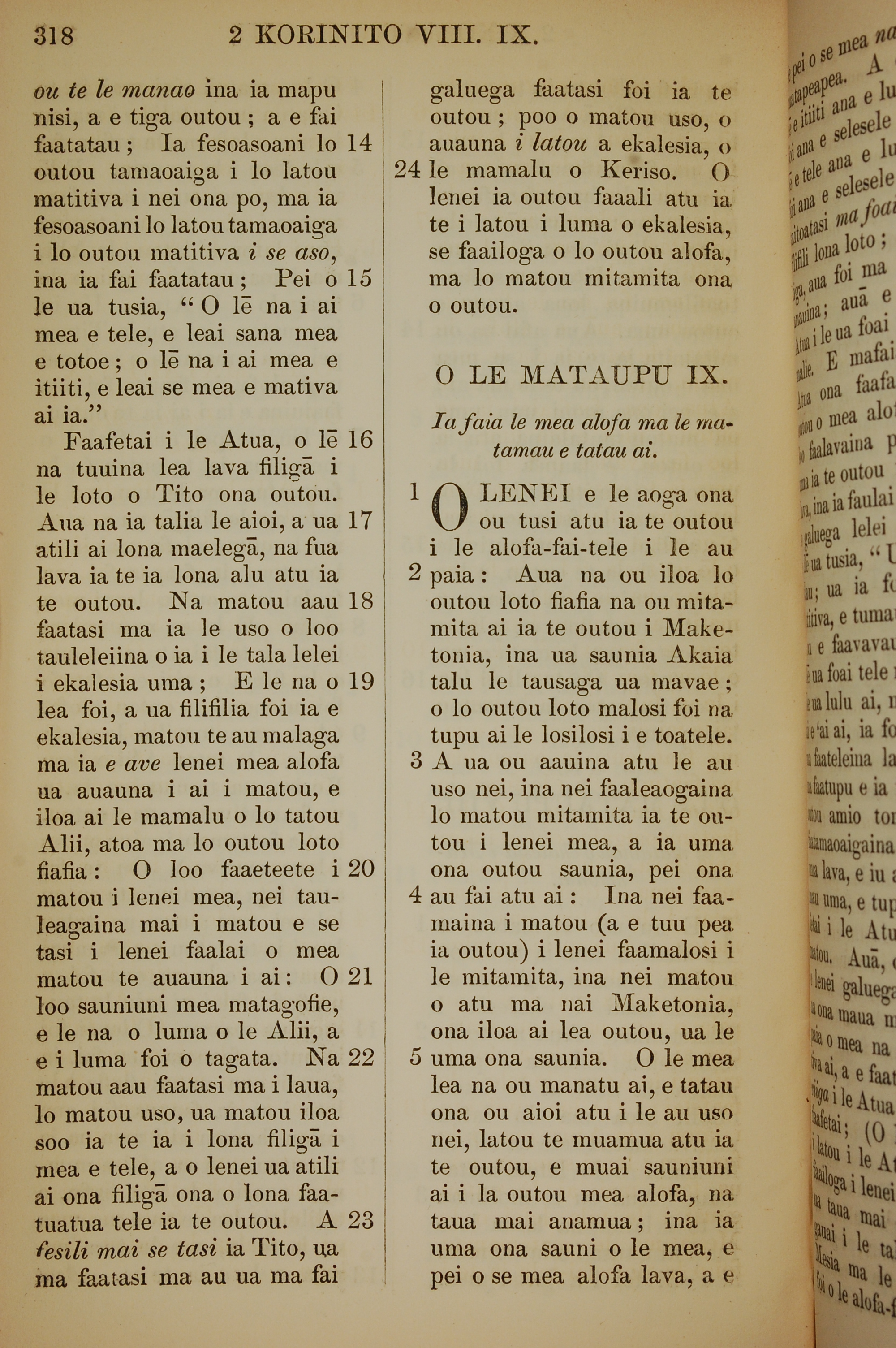 1849年萨摩亚语新约全书 哥林多后书 8 章 14 节到 9 章 5 节