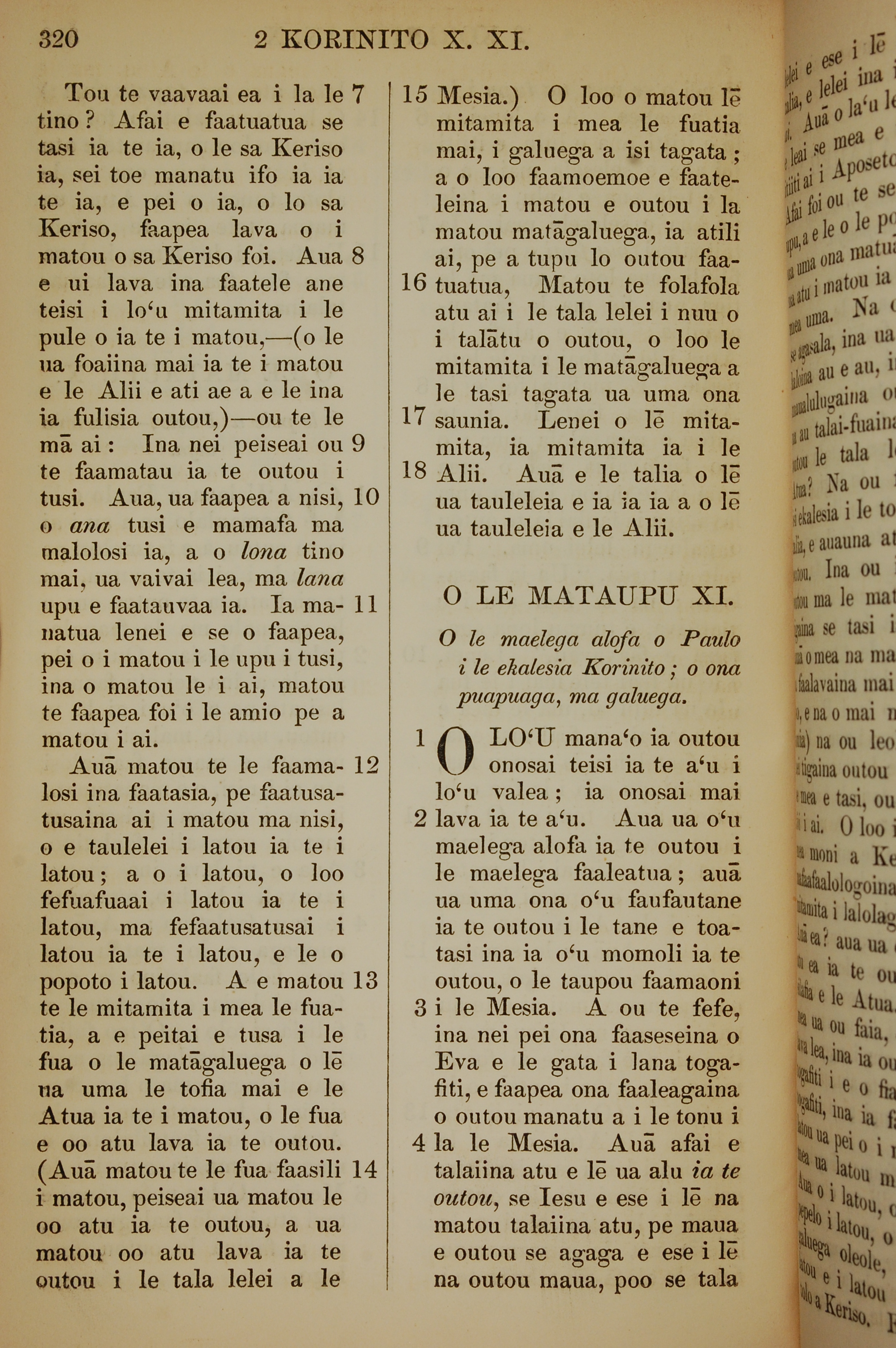 1849年萨摩亚语新约全书 哥林多后书 10 章 7 节到 11 章 4 节