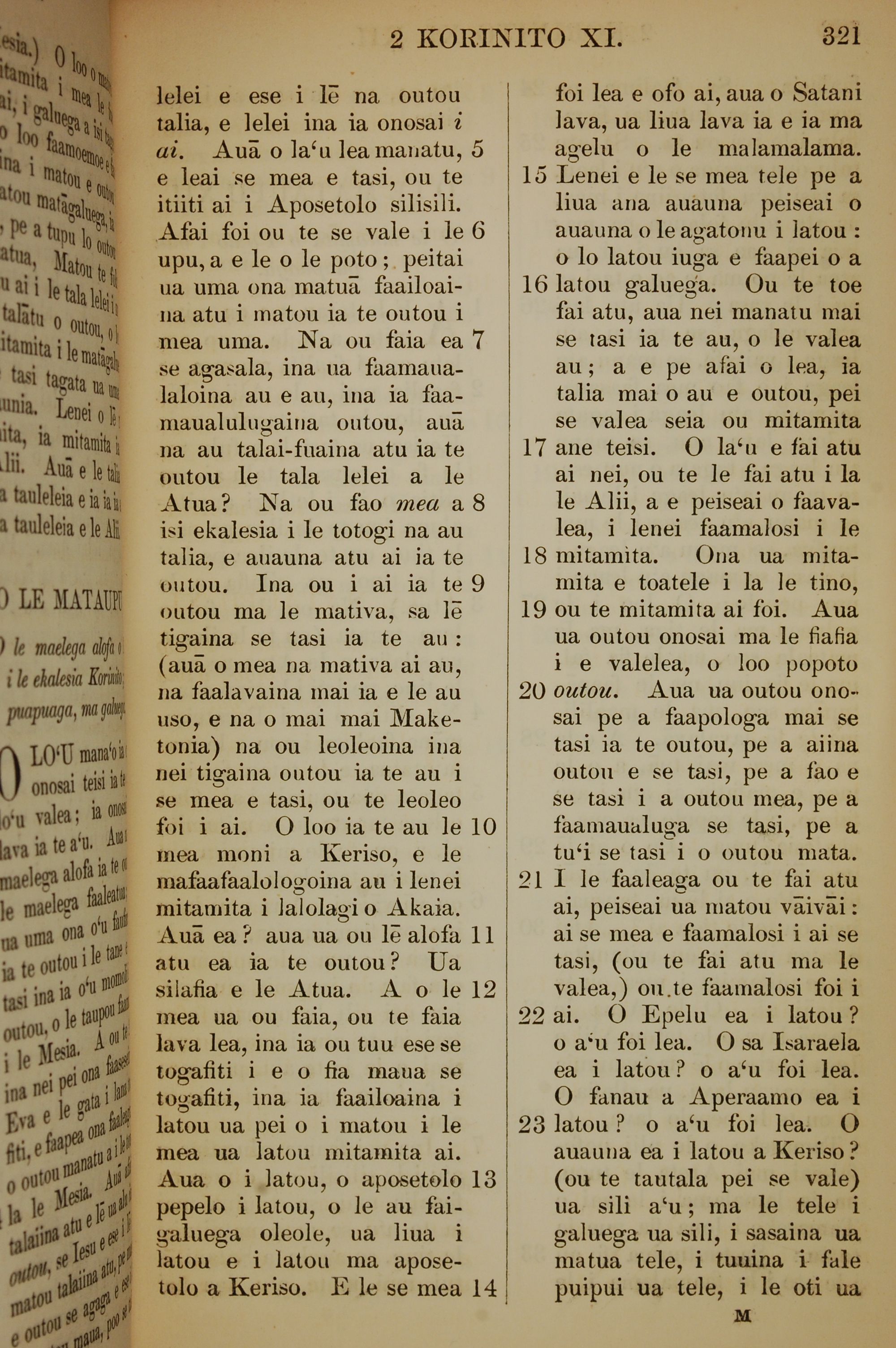 1849年萨摩亚语新约全书 哥林多后书 11 章 5 节到 11 章 23 节