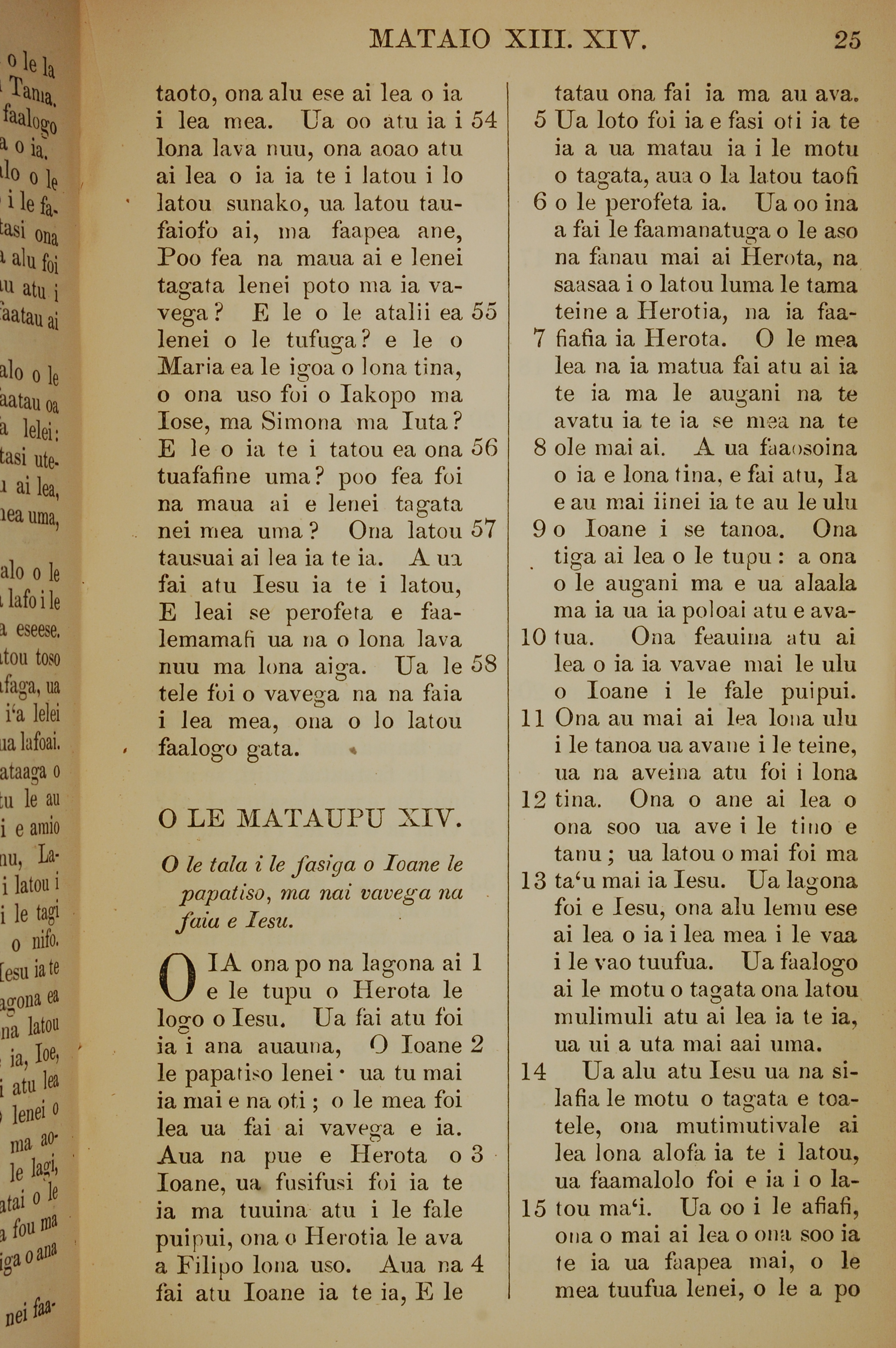 1849年萨摩亚语新约全书 马太福音 13 章 54 节到 14 章 15 节