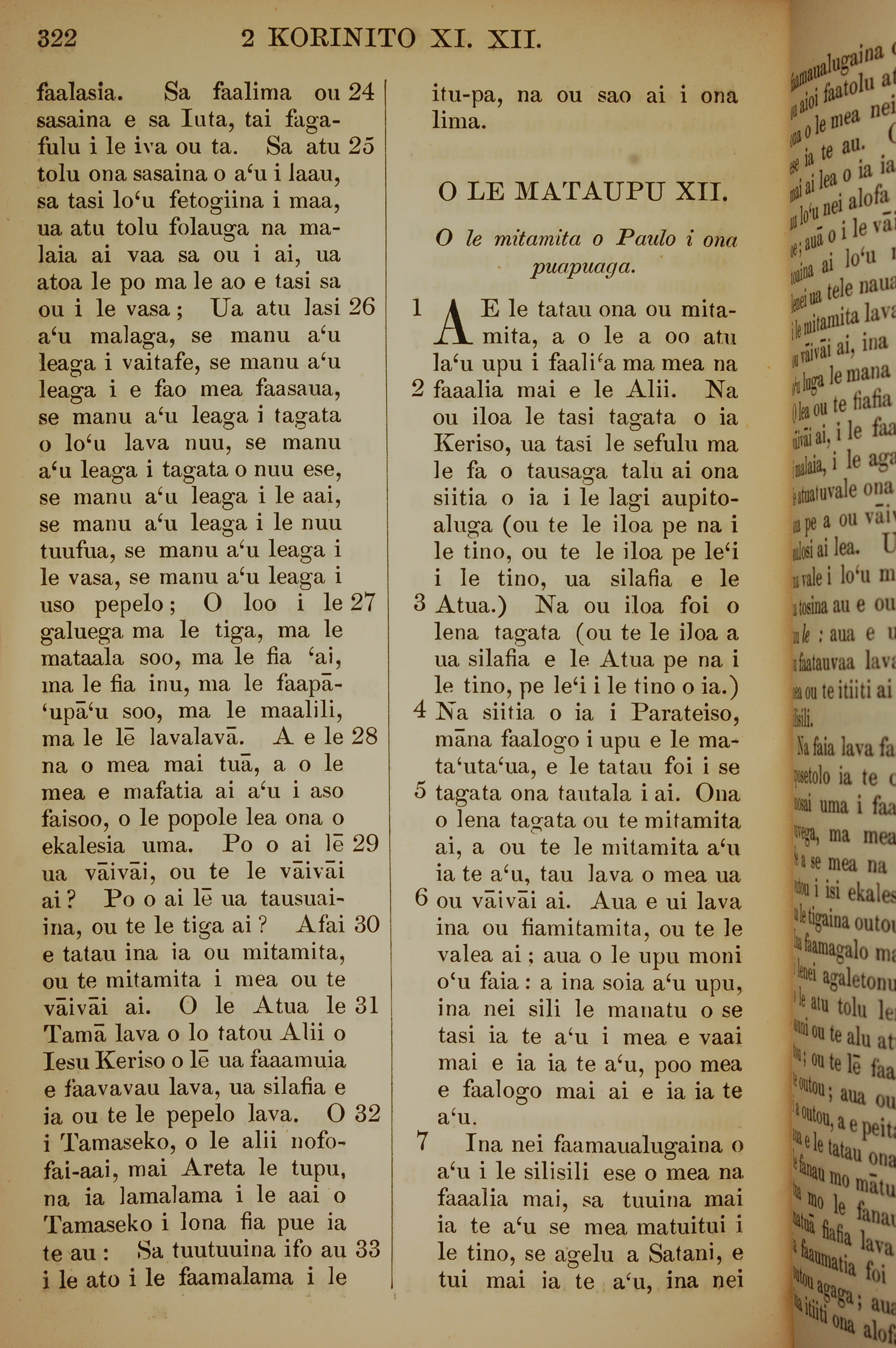 1849年萨摩亚语新约全书 哥林多后书 11 章 24 节到 12 章 7 节